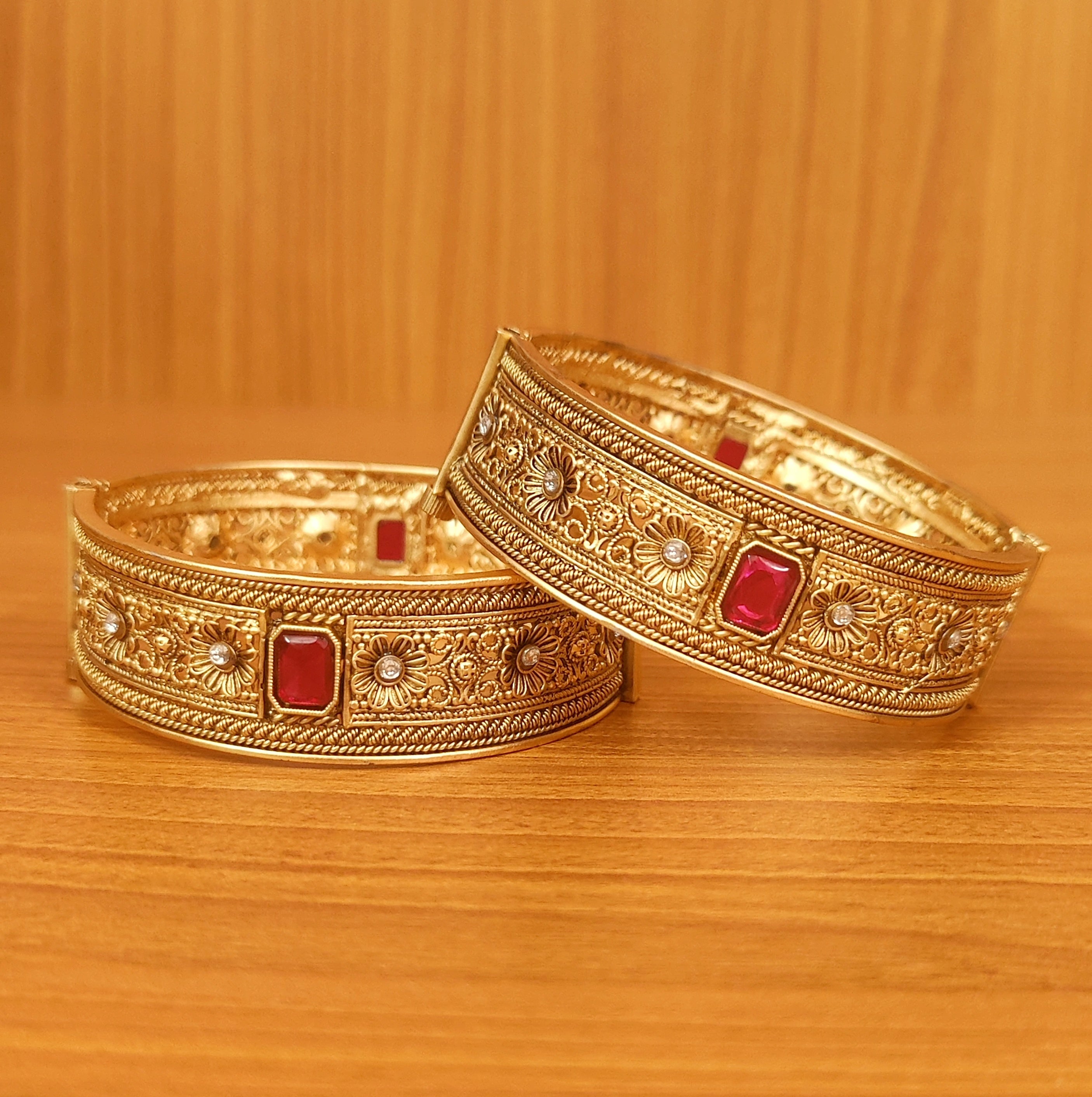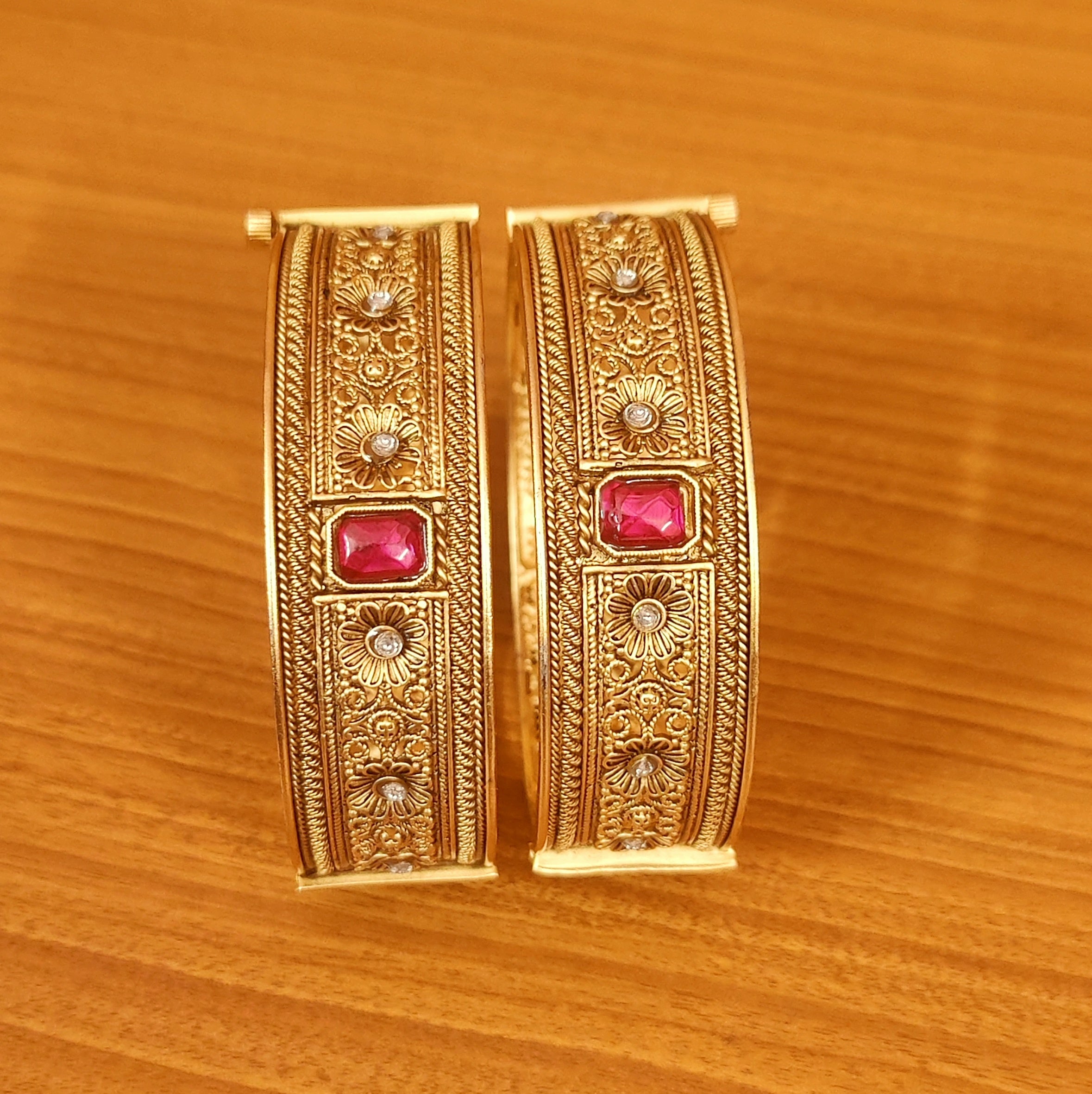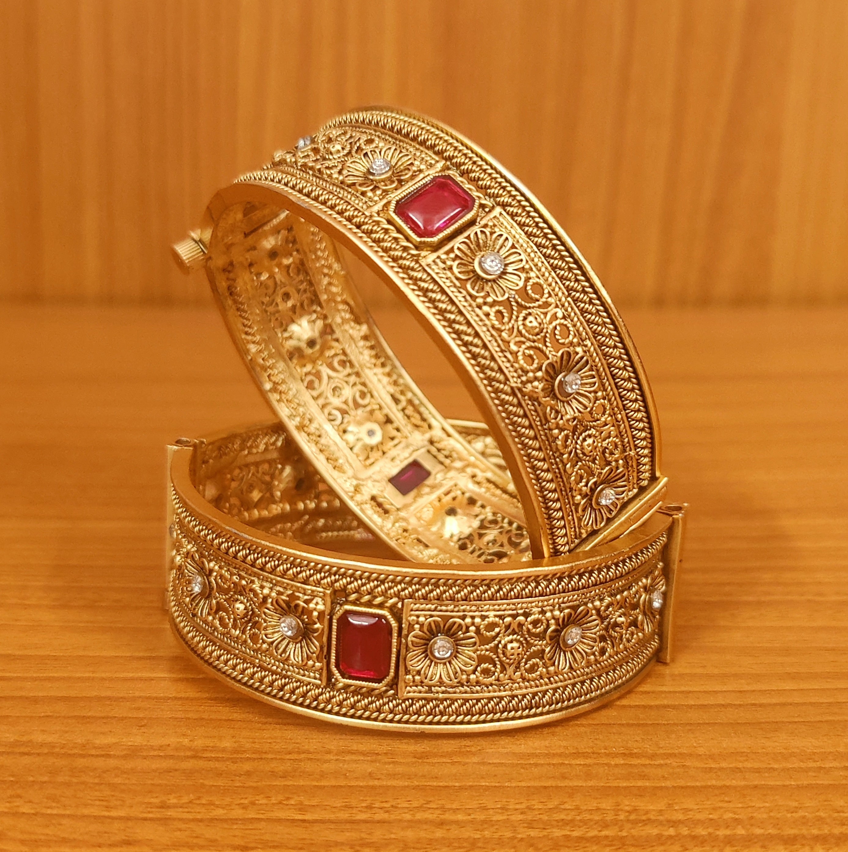 RUBY & KUNDAN LOOK ROYAL MATT GOLD LOOK OPENABLE BANGLES
