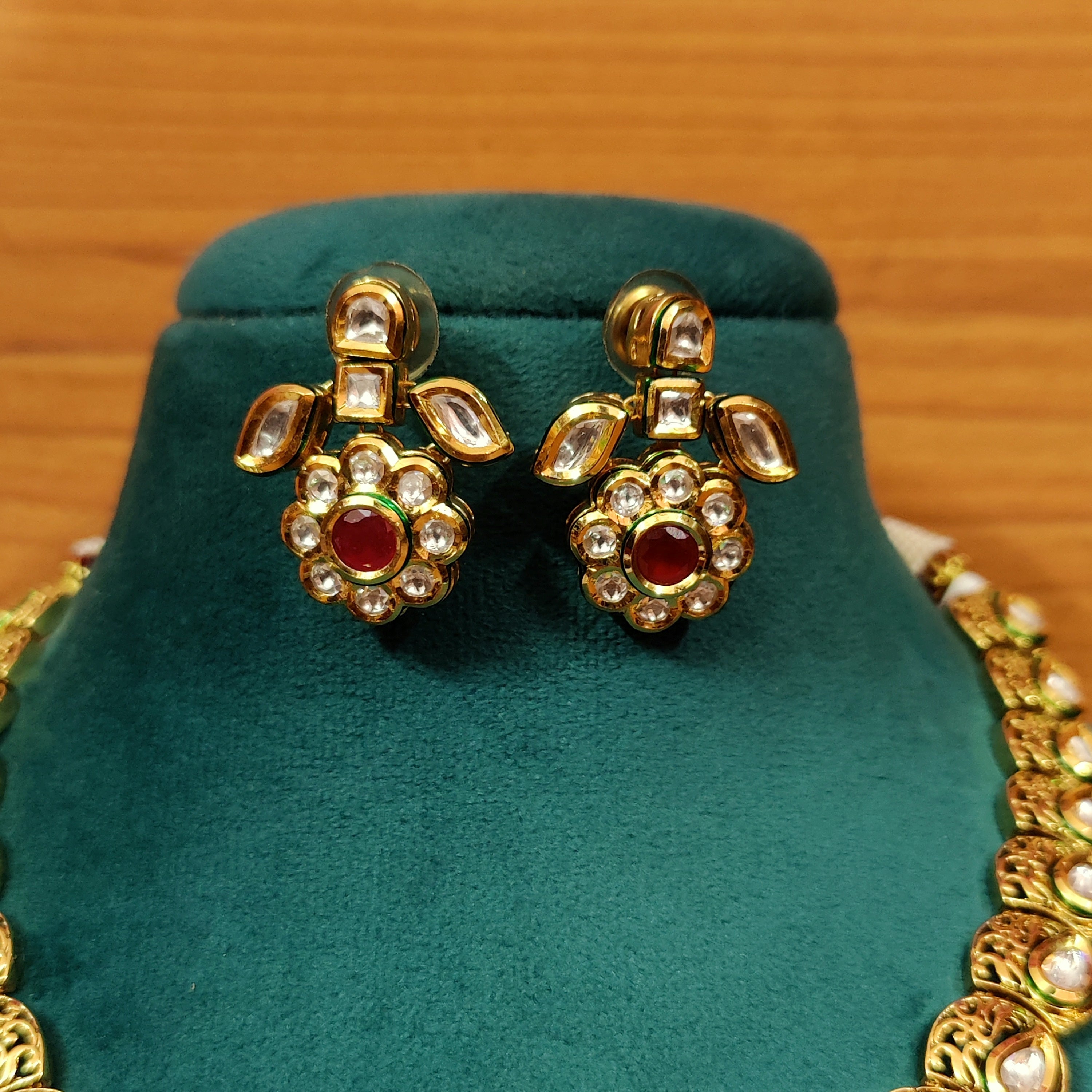 RUBY KUNDAN MEENAKARI ANTIQUE LOOK NECKLACE SET