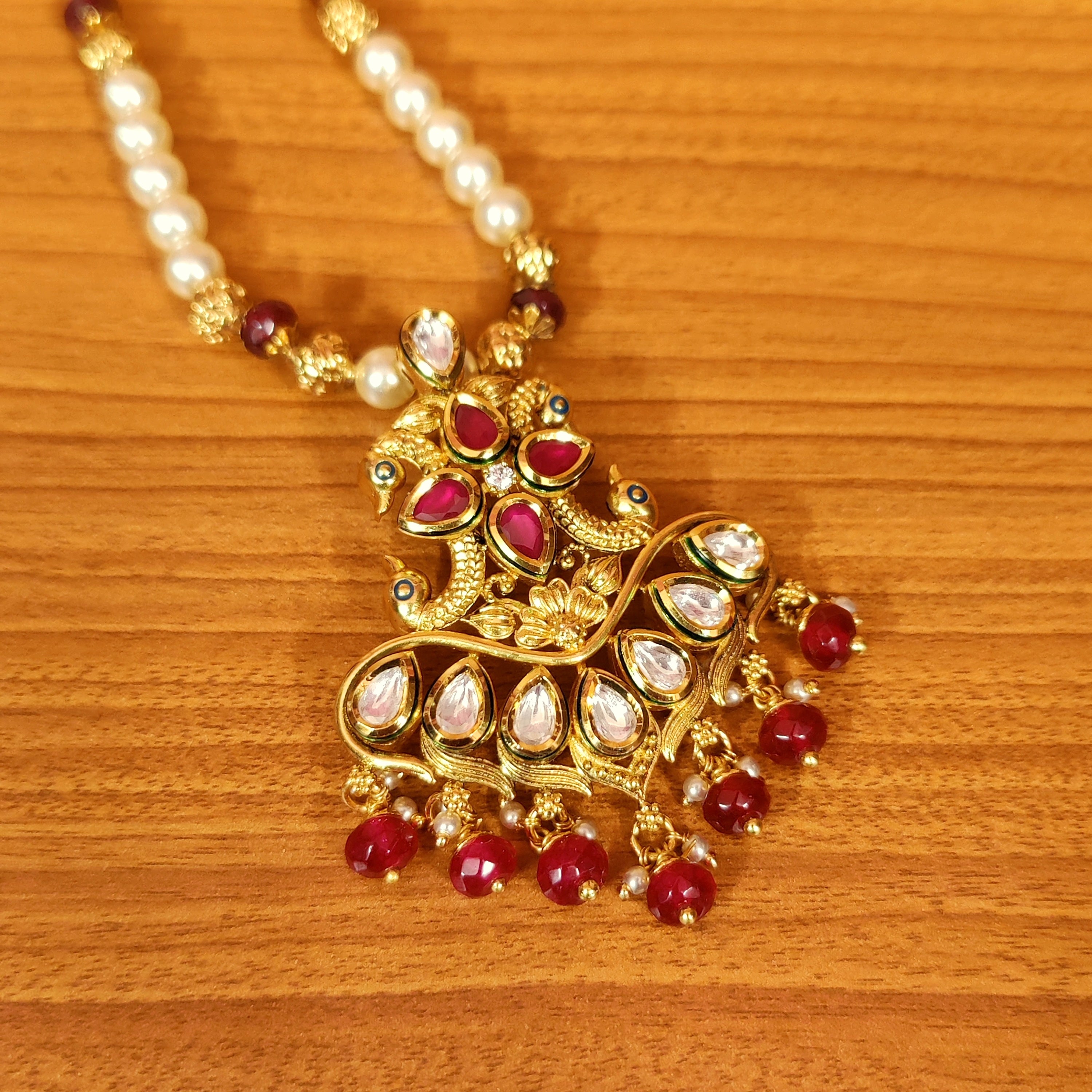 RUBY KUNDAN POLKI & PEARL BEADED PENDANT SET