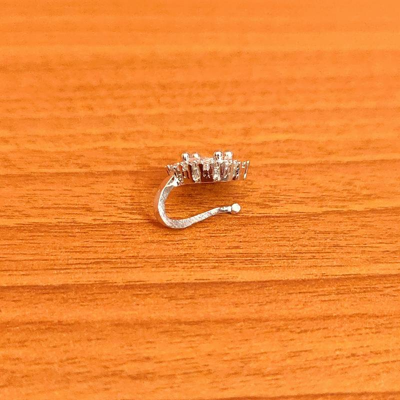 This Beautiful Nose Ring Is Handcrafted In Brass Alloy With Imitation Cz Stone Of Very Fine Quality . The Nose Ring Is Very Intricate And Very Light In Weight And Is Plated In 18kt White Gold Plating As Done On The Real Gold Jewellery.