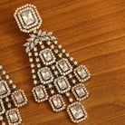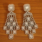 These earrings are handcrafted in silver alloy with imitation american diamond work of very fine quality. These artistic yet modern earrings are plated with high quality white gold rhodium. The earrings are very light in weight.