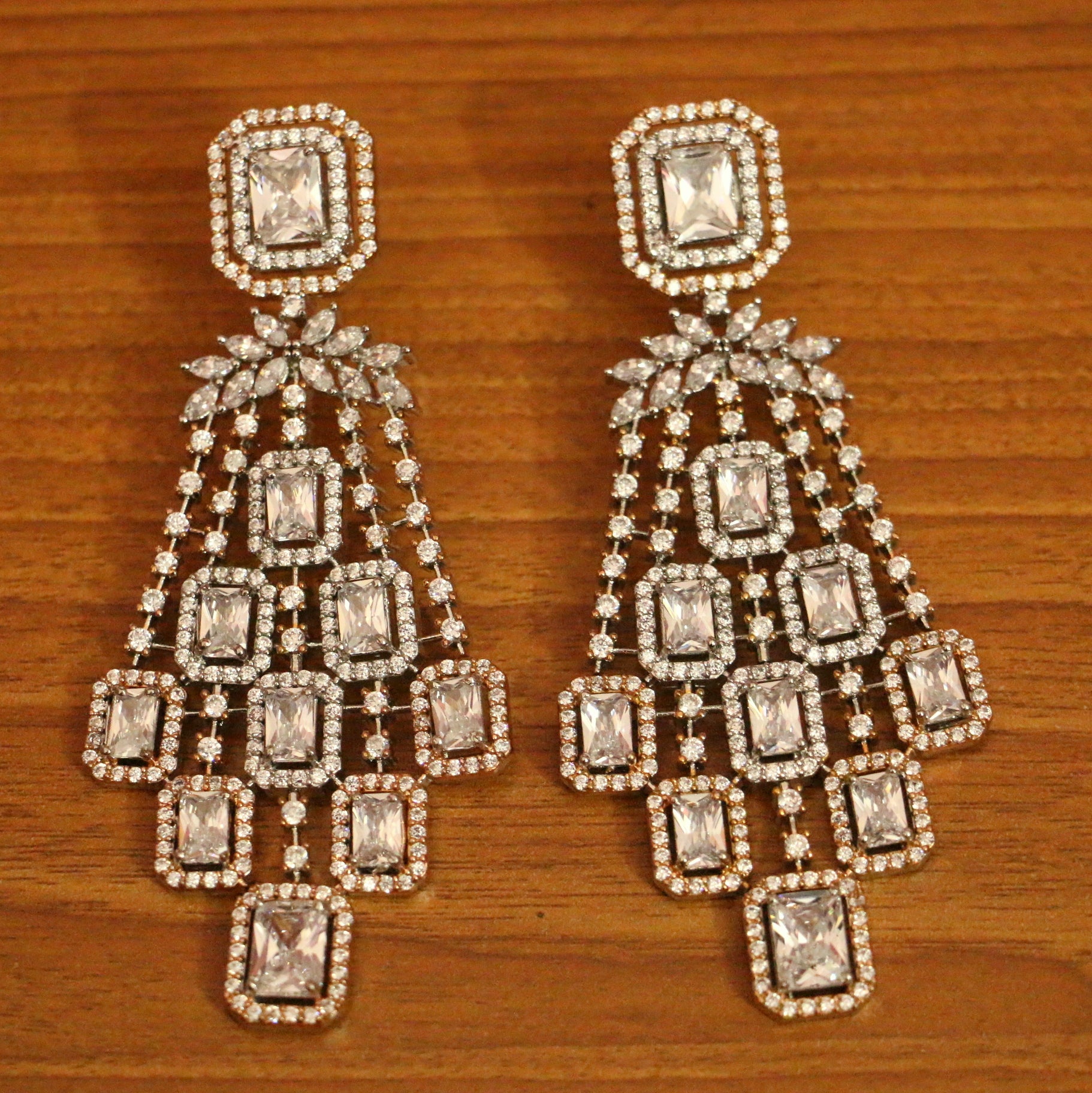 SILVER & ROSE GOLD DIAMOND LOOK DANGLERS