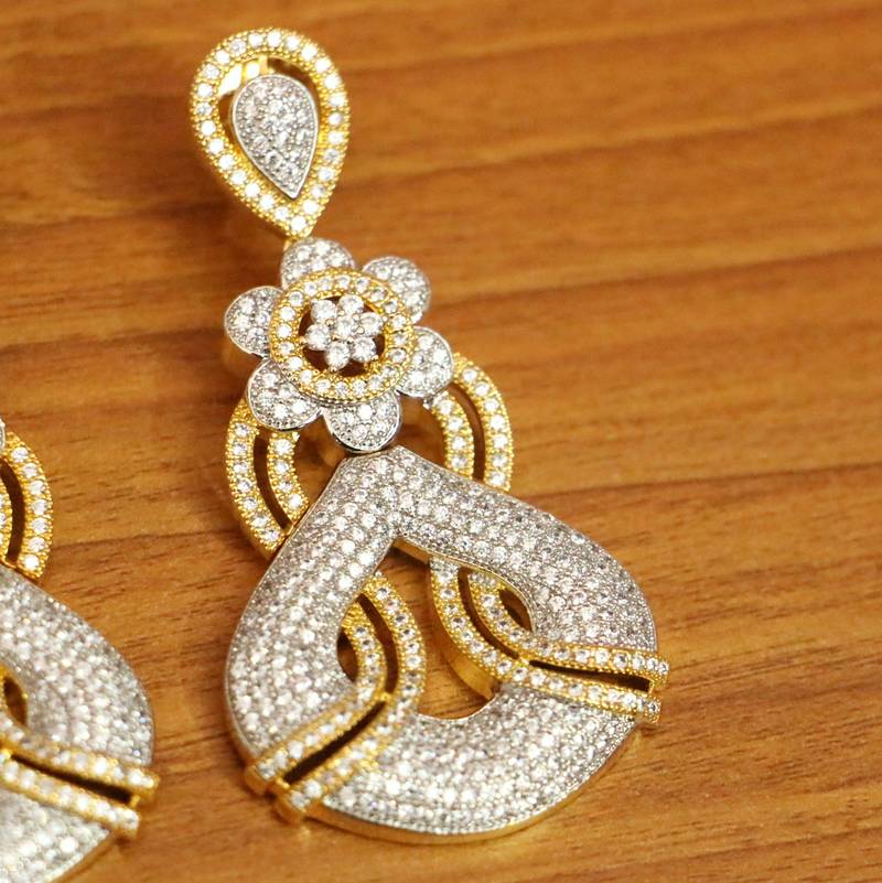 These Earrings Are Handcrafted In Silver Alloy With Imitation Cz Stone Of Very Fine Quality. These Artistic Yet Modern Earrings Are Plated With High Quality Nickel Free Gold Rhodium. The Earrings Are Very Light In Weight.