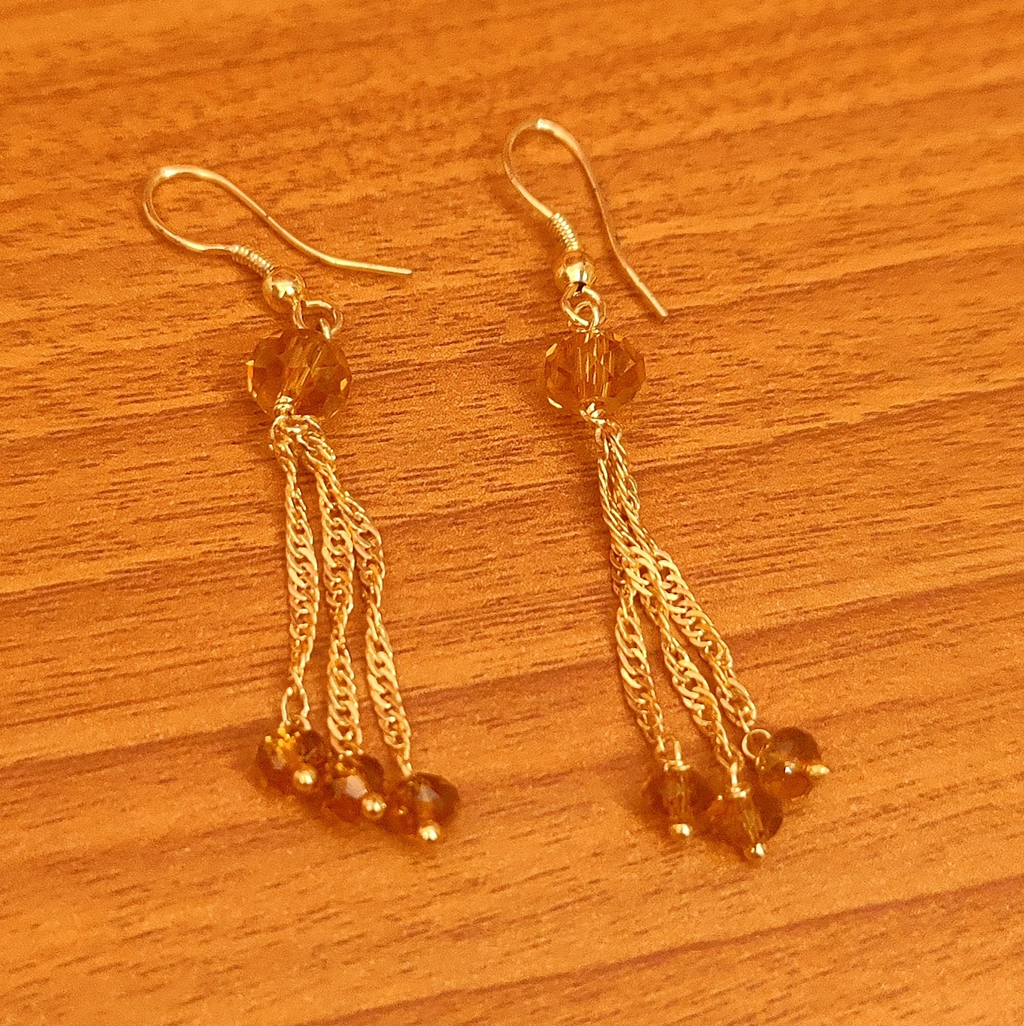 YELLOW CRYSTAL GOLD CHAIN EARRINGS