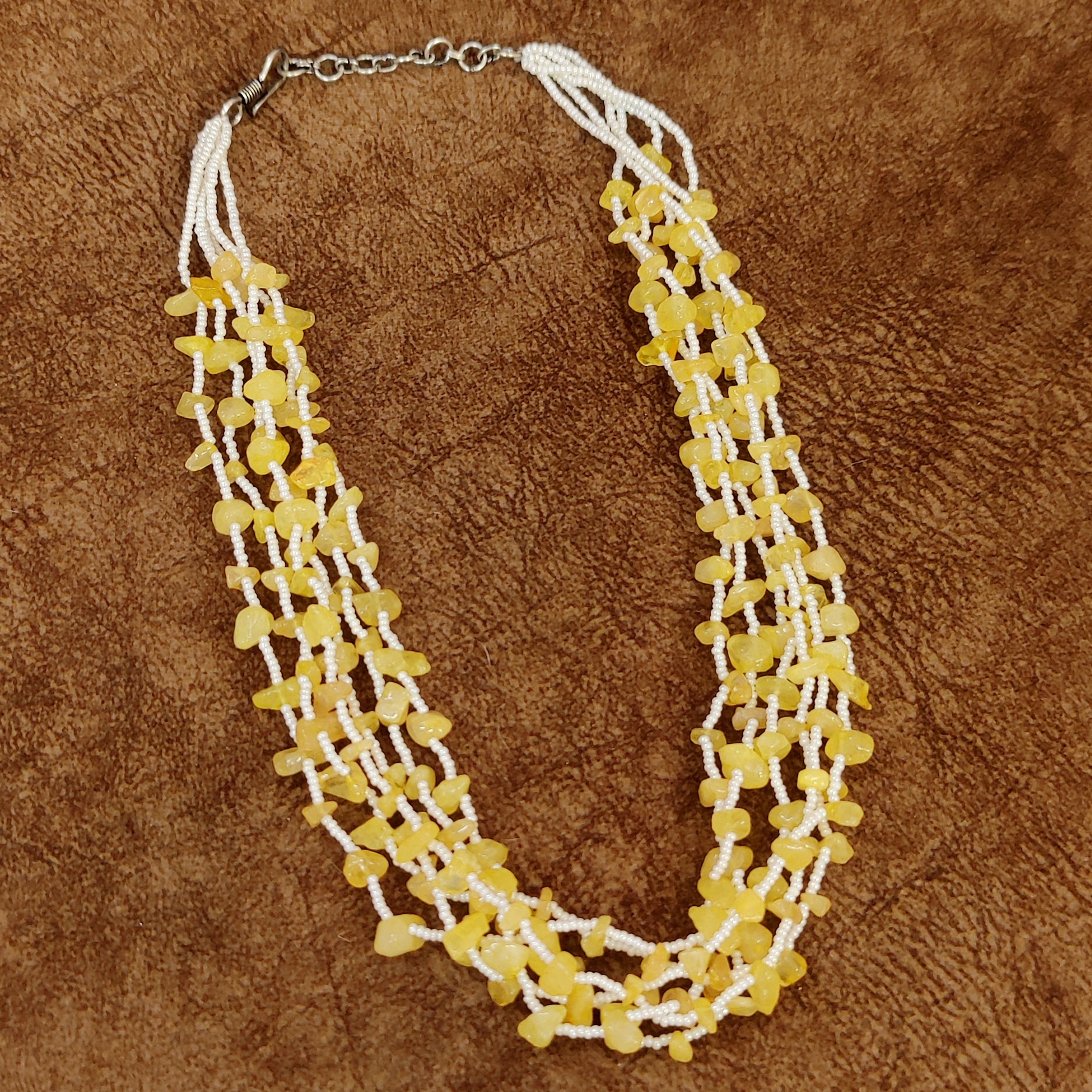 YELLOW ONYX & PEARL SEMI PRECIOUS NECKLACE