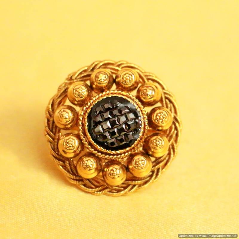 ANTIQUE GOLD LOOK BLACK STONE COCKTAIL RING