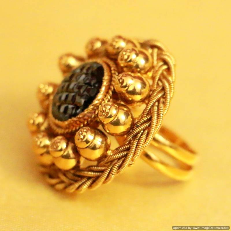 This beautiful ring is handcrafted in copper alloy with imitation black onyx of very fine quality . This ring is coated with 18 kt gold polish which give them a unique look . An absolutely stunning piece to own and are very light in weight.