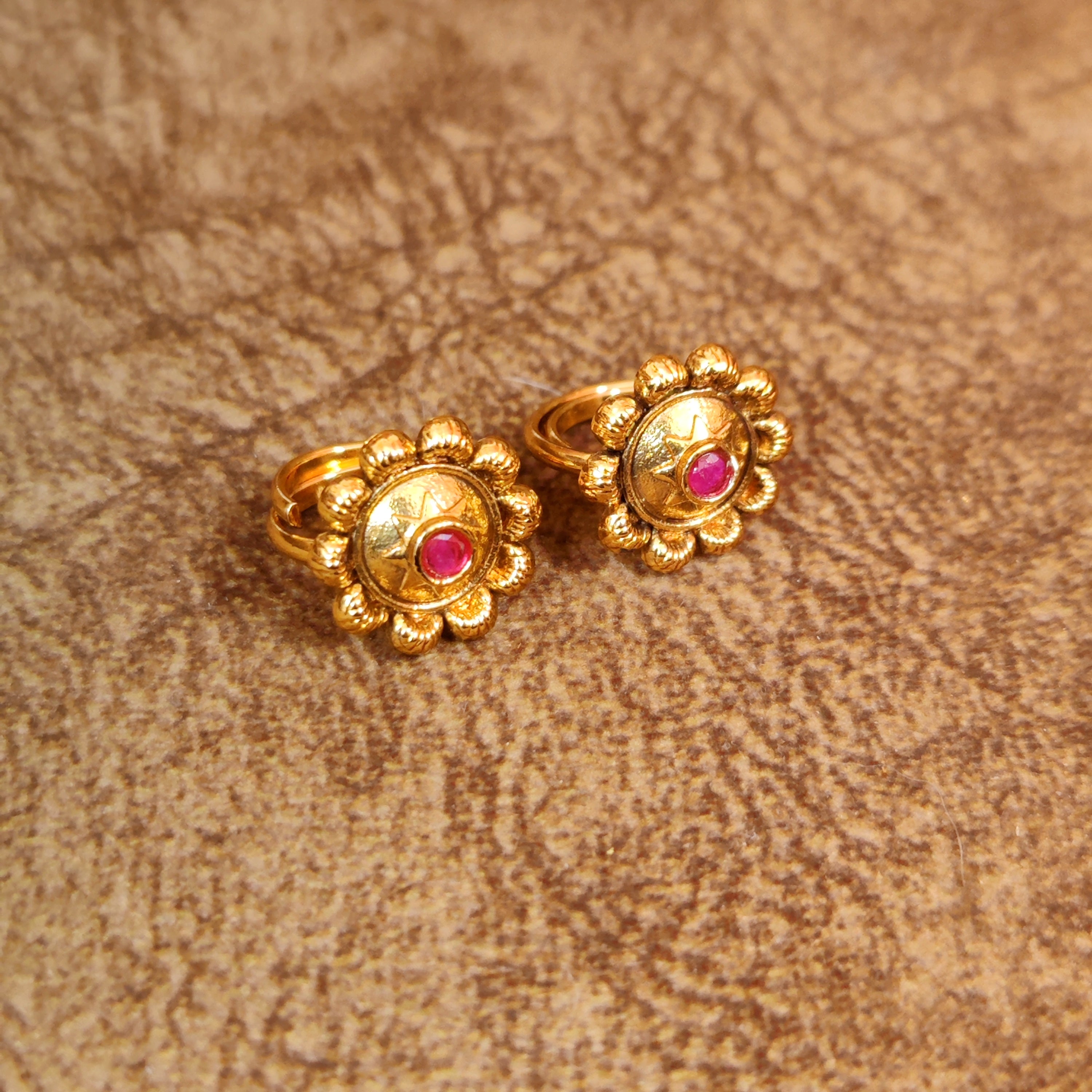 Enhance your traditional elegance with these Antique Gold Plated Adjustable Toe Rings, crafted for timeless beauty. Designed with intricate detailing and a vintage-inspired finish, these toe rings add a royal charm to your look. The adjustable design ensures a comfortable fit for all sizes, making them perfect for daily wear or special occasions. Whether paired with ethnic attire or fusion wear, these toe rings are a must-have accessory for any jewelry lover. Shop now and embrace classic charm with a modern touch!