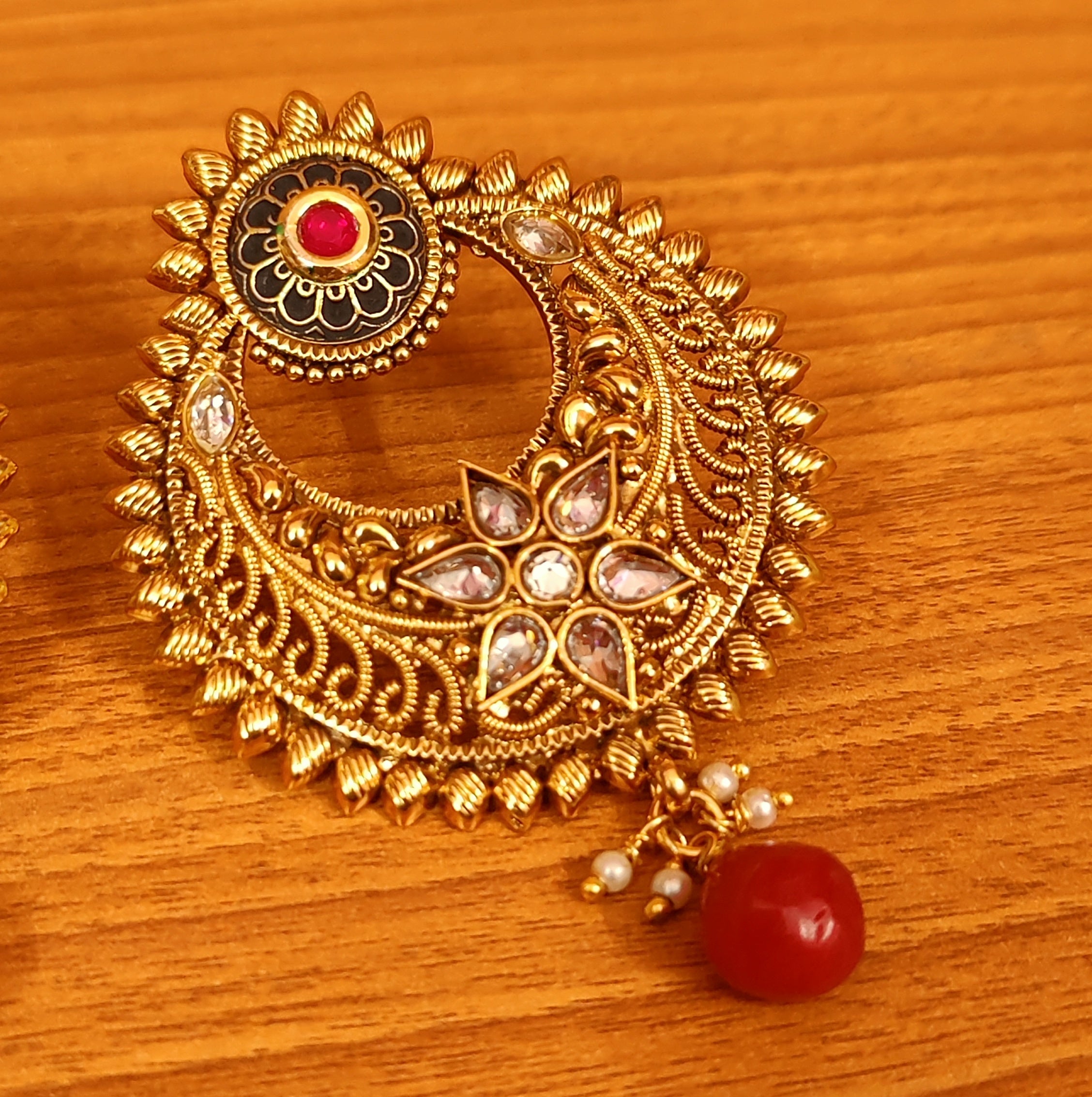 ANTIQUE GOLD PLATED POLKI STUDDED CHAANDBAALI