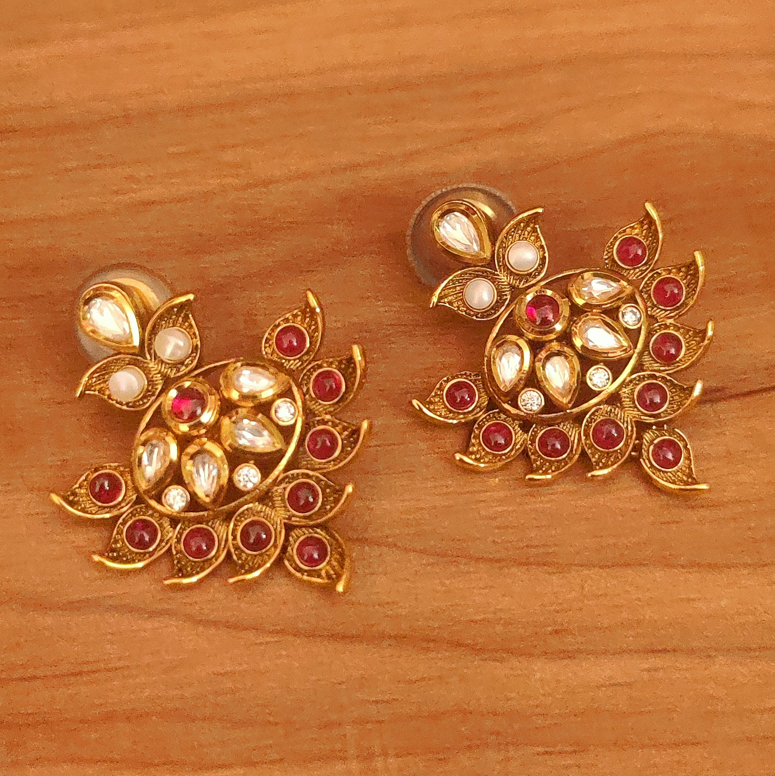 ANTIQUE KUNDAN POLKI RED KEMPU STONE EARRINGS