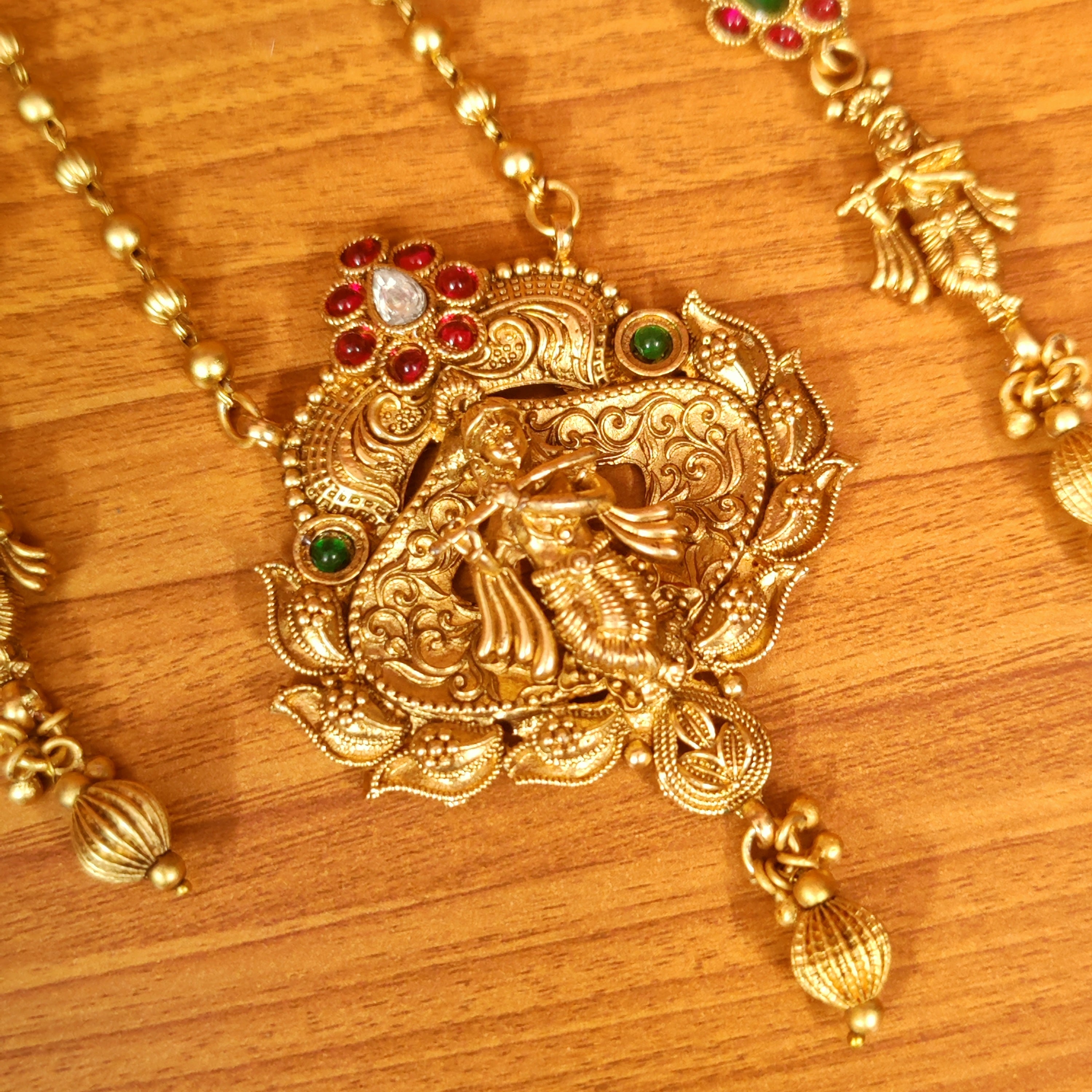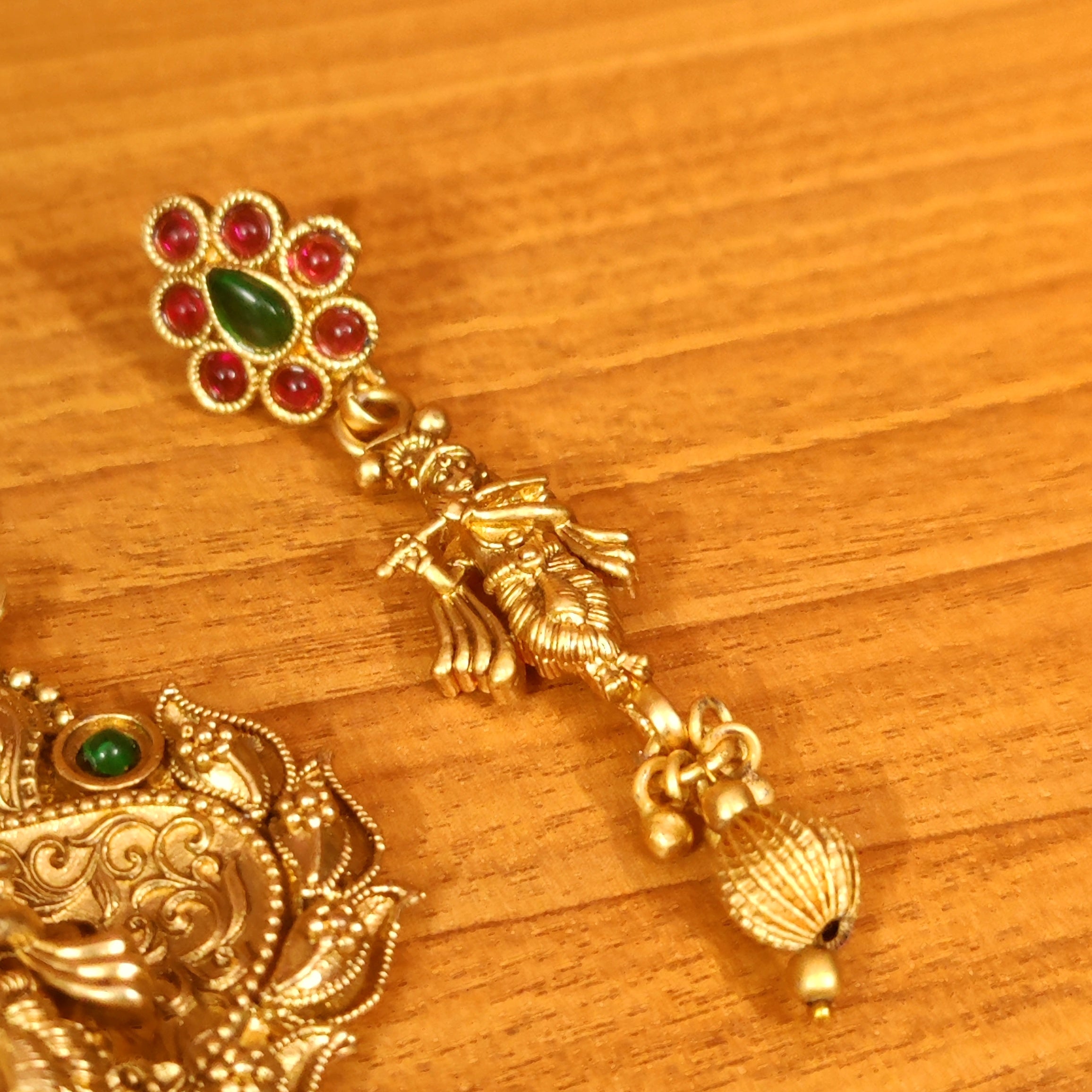 ANTIQUE MATT GOLD LOOK LORD KRISHNA PENDANT SET