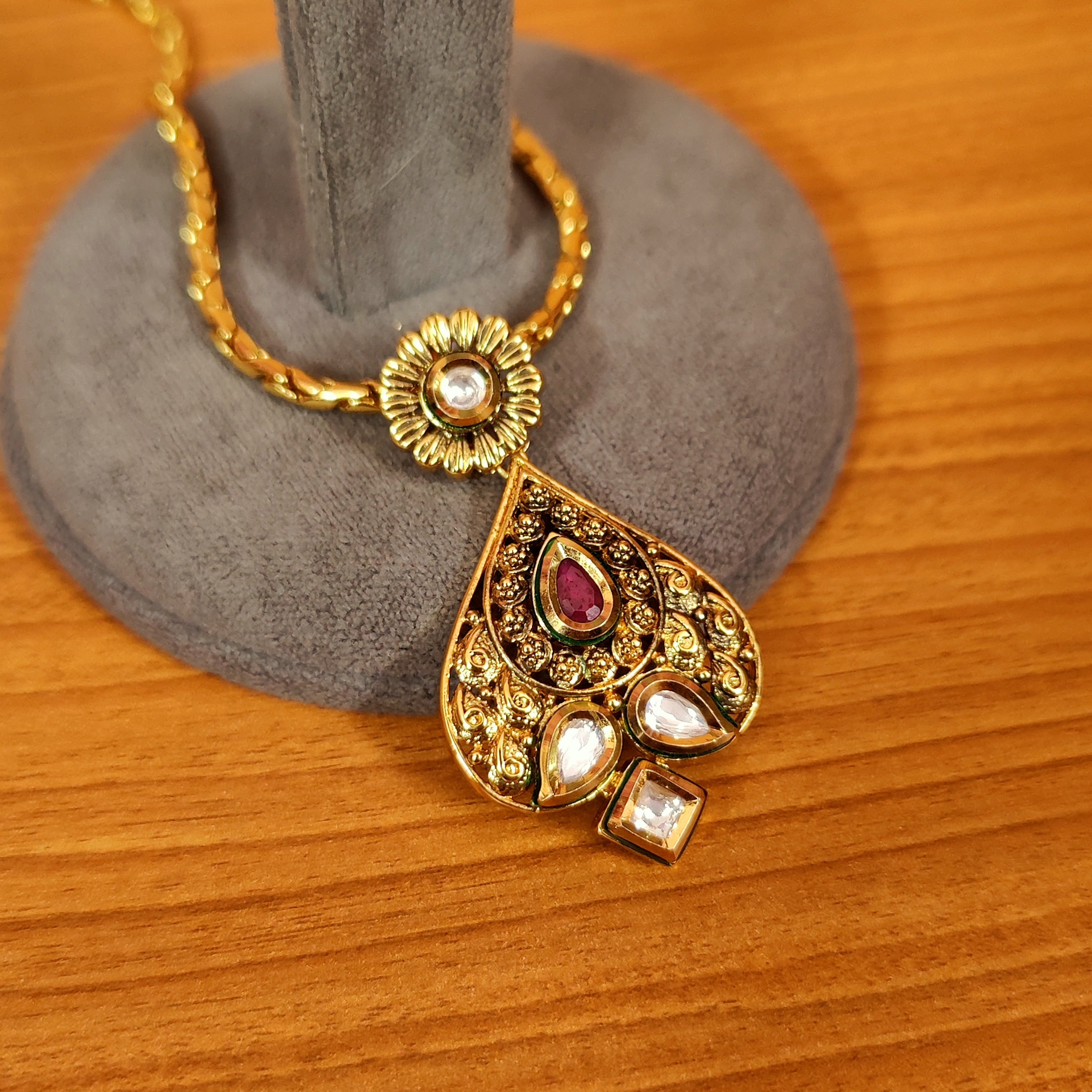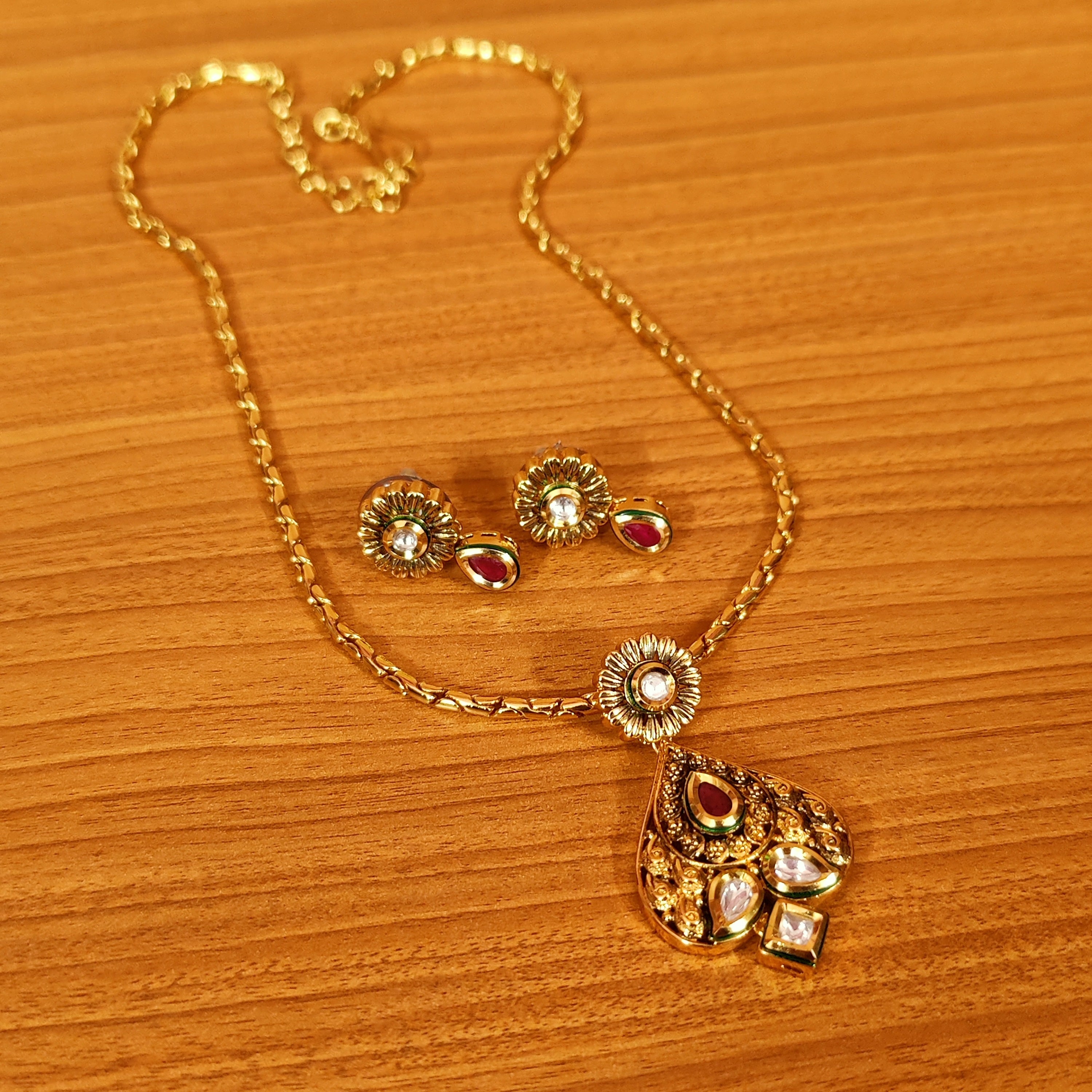 ANTIQUE GOLD LOOK RUBY STUDDED SIMPLE PENDANT SET