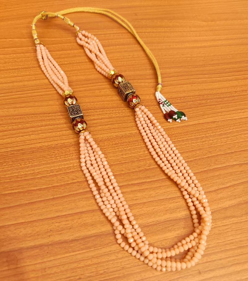 This Necklace Is Handcrafted In Brass Alloy With Peach Colour Crystal Beads And Meenakari Balls , The Necklace Is Very Light In Weight And All The Stones Used In This Necklace Are Real. A Perfect Casual Wear For Outing .