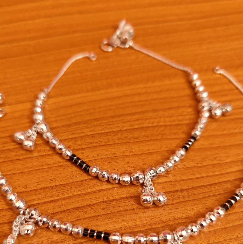 These Light Weight Chain Anklets Are Handcrafted In Metal Alloy With Silver Black Beads , The Anklets Are Very Light In Weight And Are Plated With Silver Polish Which Gives Them A Real Silver Look.