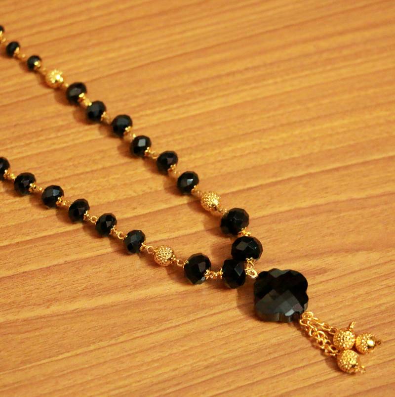 This Ethnic Necklace Is Handcarfted In Copper Alloy With Imitation Black & Gold Beads Of Very Fine Quality , The Necklace Is Very Light In Weight And Plated With Gold Rhodium