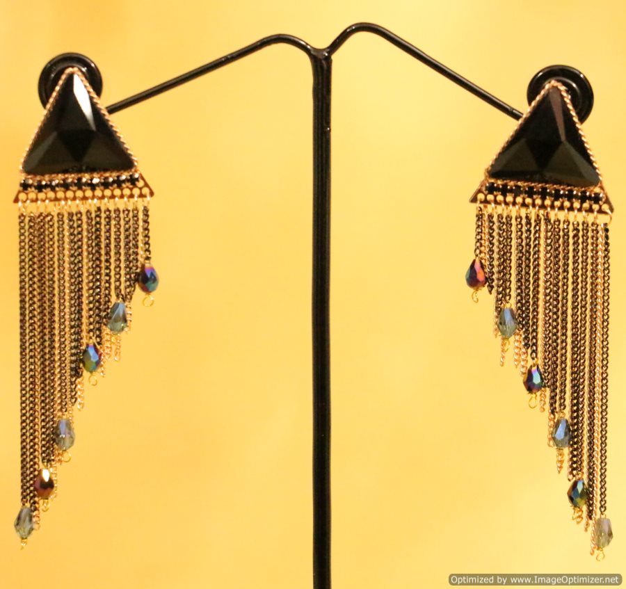 These beautiful Earrings are handcrafted in silver alloy with imitation american diamond & ONYX of very fine quality . These earrings are coated with 18 kt gold polish which give them a unique look . An absolutely stunning piece to own and are very light in weight.