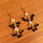 These kundan polki studs are handcrafted in brass alloy with imitation blue colour pearls of very fine quality. these artistic yet modern studs are plated with high quality gold rhodium. the earrings are very light in weight.