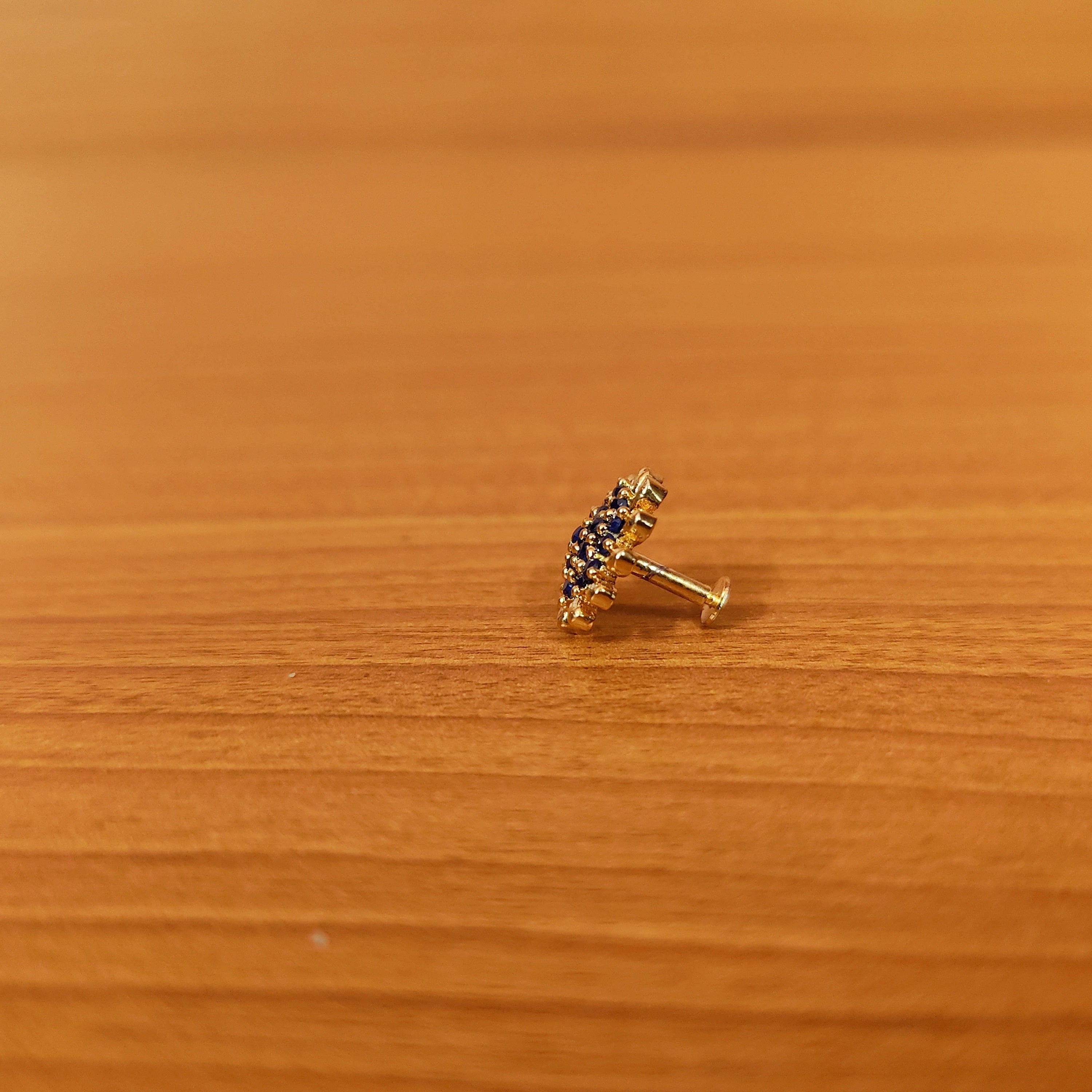 Blue Sunflower Pattern Gold Plated Nose Pin