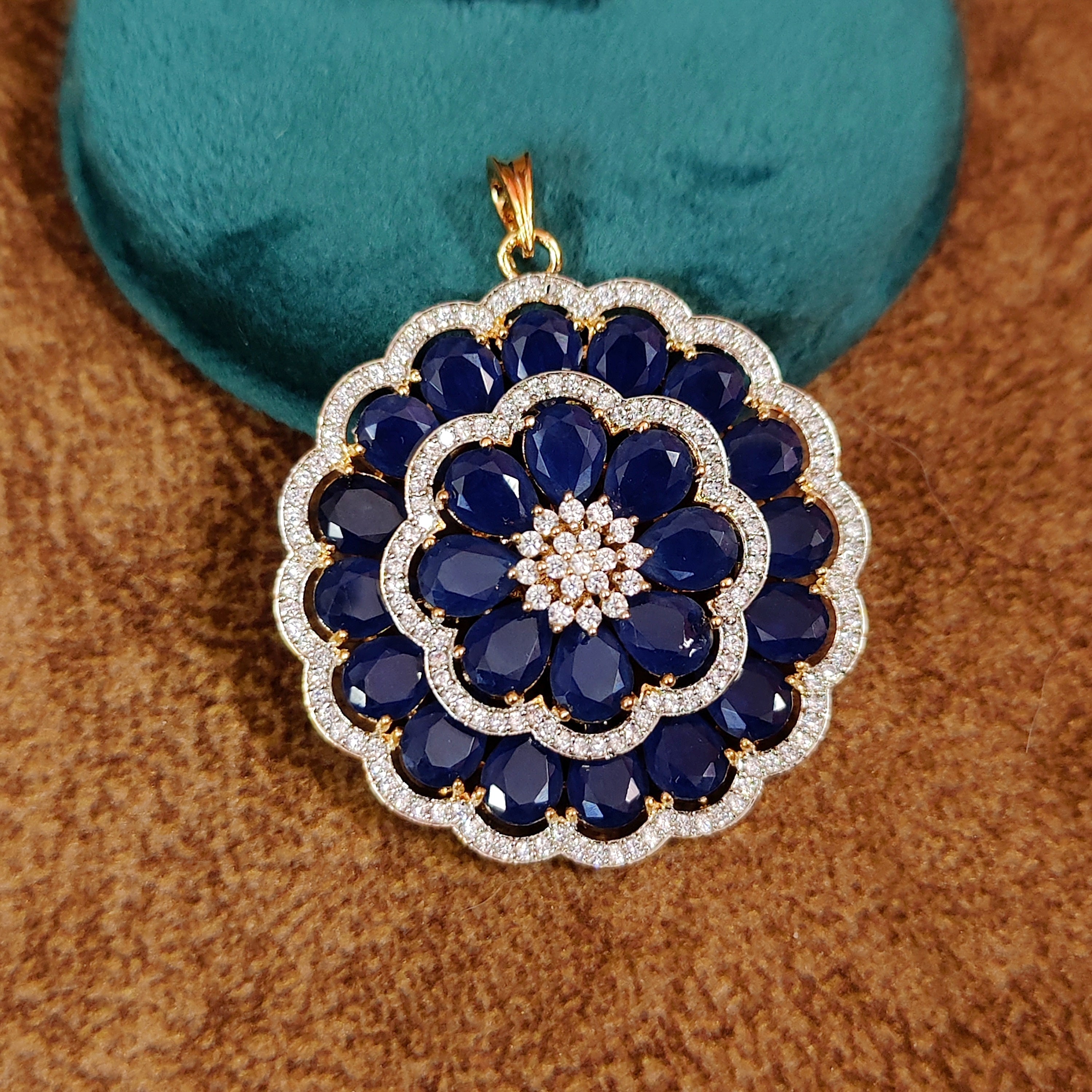 BLUE COLOUR FLORAL CZ PENDANT SET