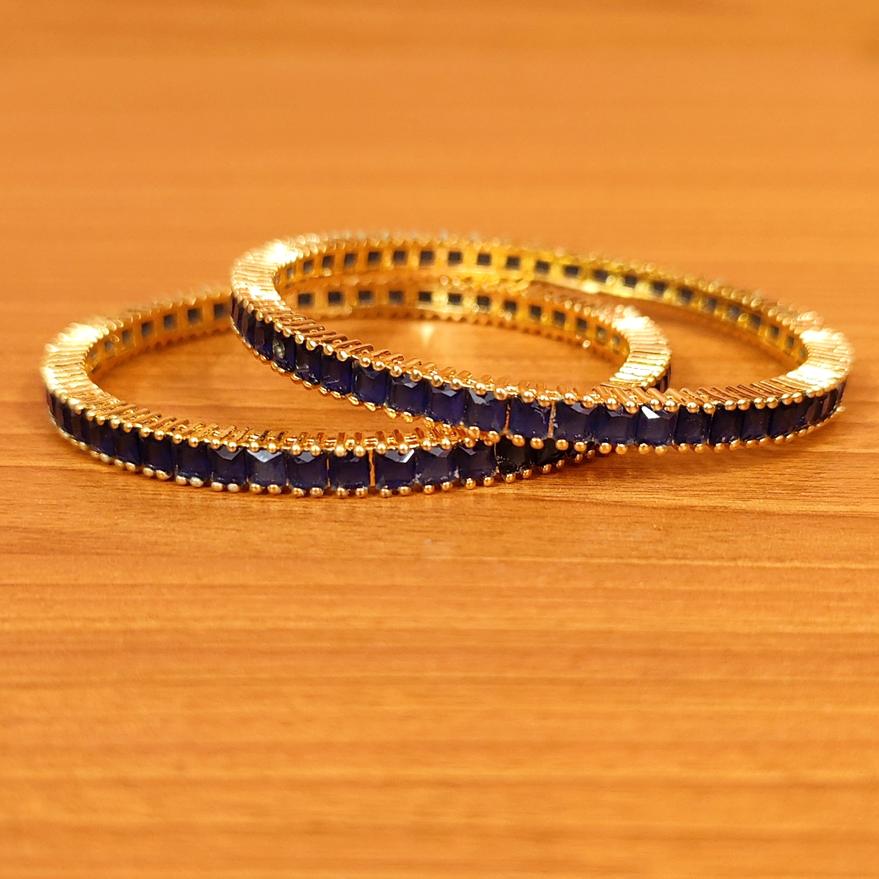 BLUE SAPPHIRE CZ STUDDED GOLD PLATED BANGLES