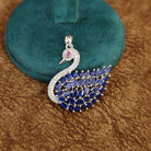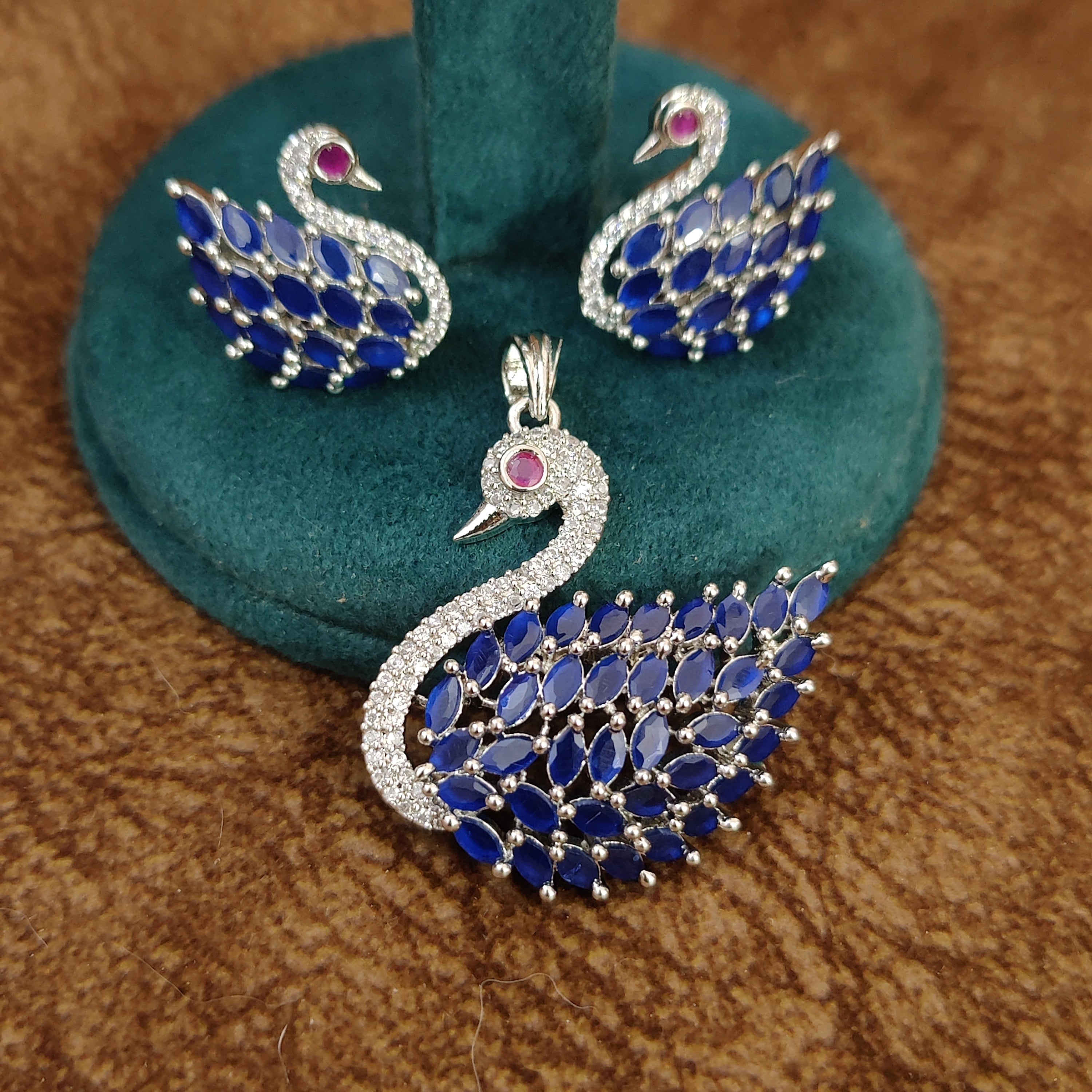 BLUE SAPPHIRE SILVER PLATED BIRD PENDANT SET