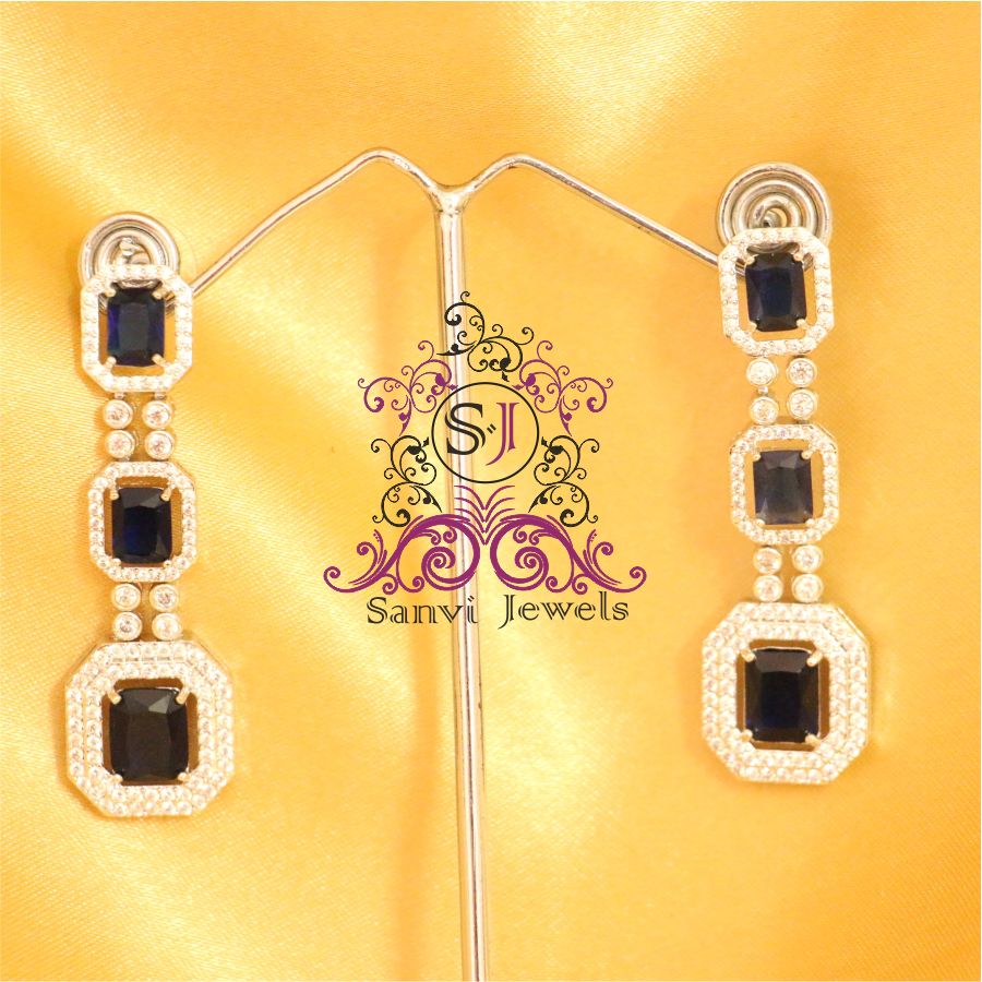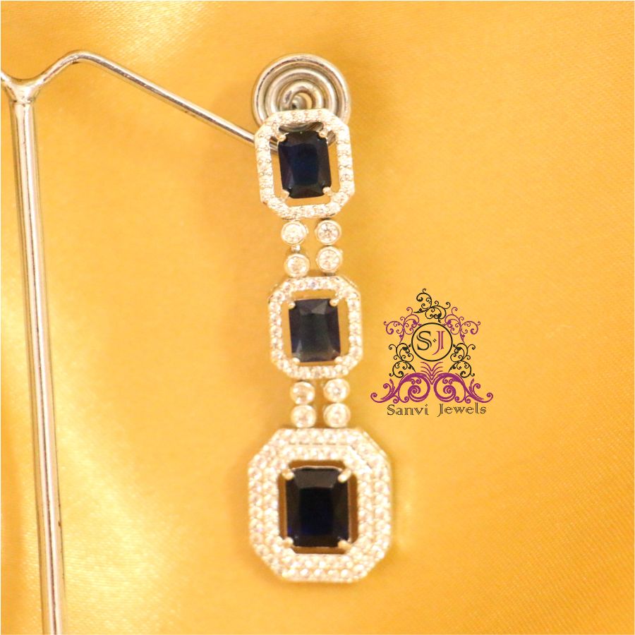 BLUE SAPPHIRE SILVER PLATED CZ DANGLERS