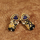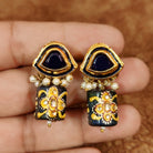 BLUE STONE KUNDAN SETTING MEENAKARI BEADS DANGLING STUDS