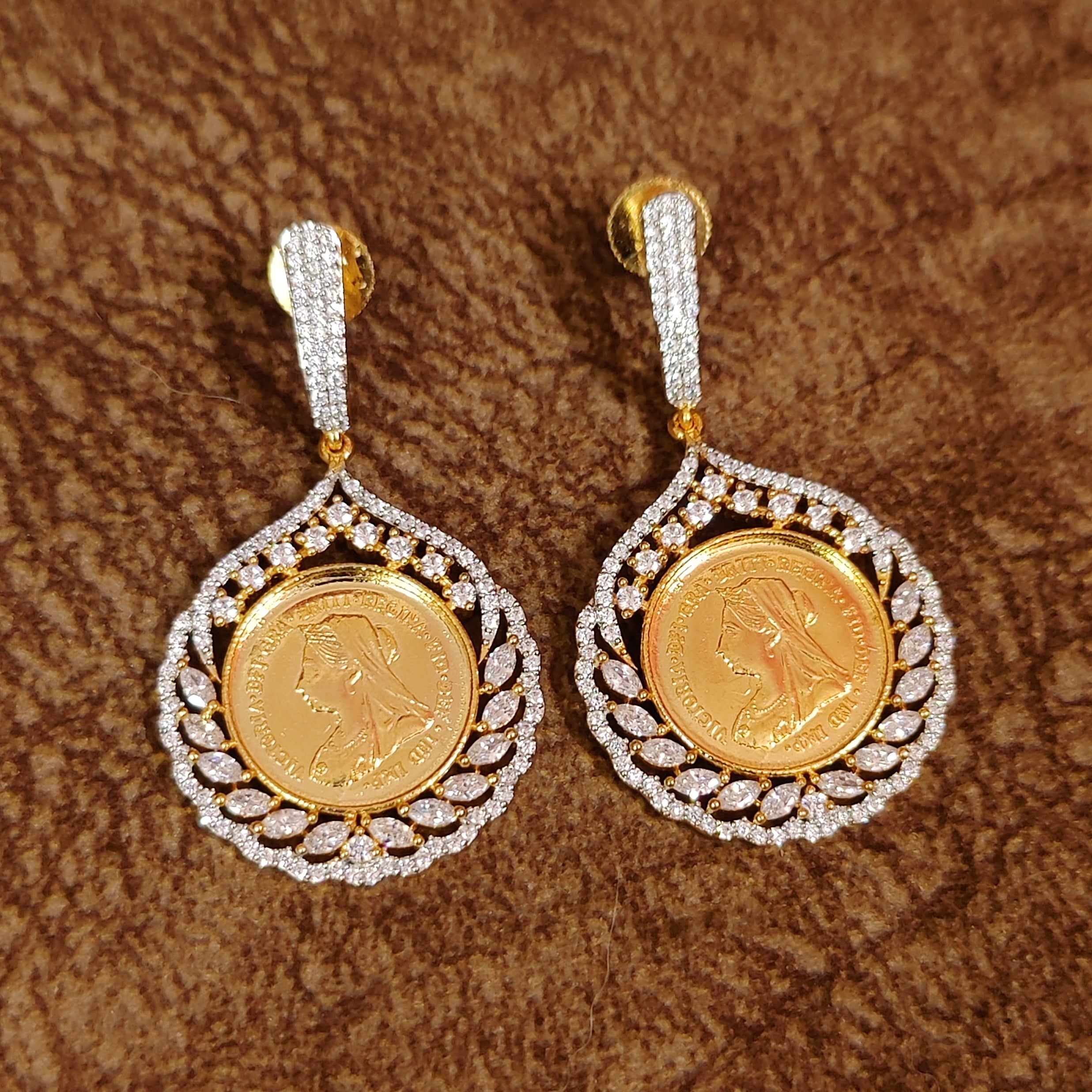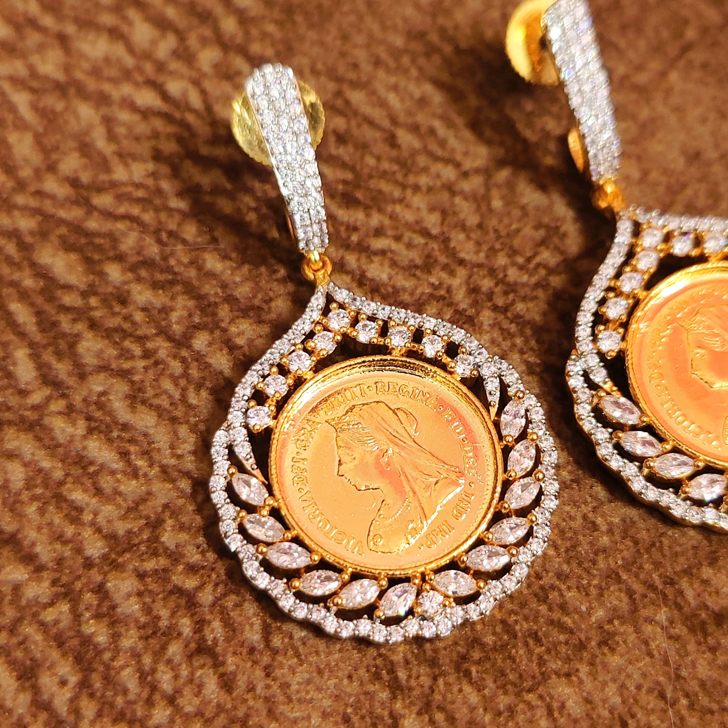Sparkle and shine with our CZ Studded Diamond Look Ginni Earrings! These earrings feature the finest quality American diamonds, giving you a real look alike at an affordable price. The gold plated ginni pattern adds a touch of elegance to the trendy design, making it a must-have accessory. Upgrade your style without breaking the bank!