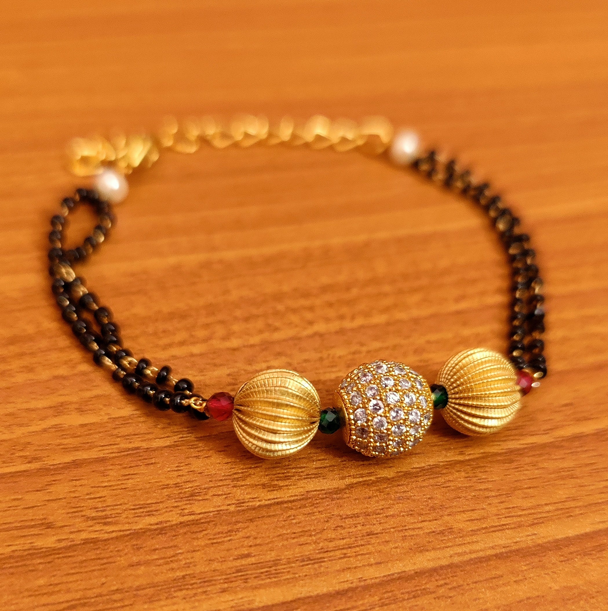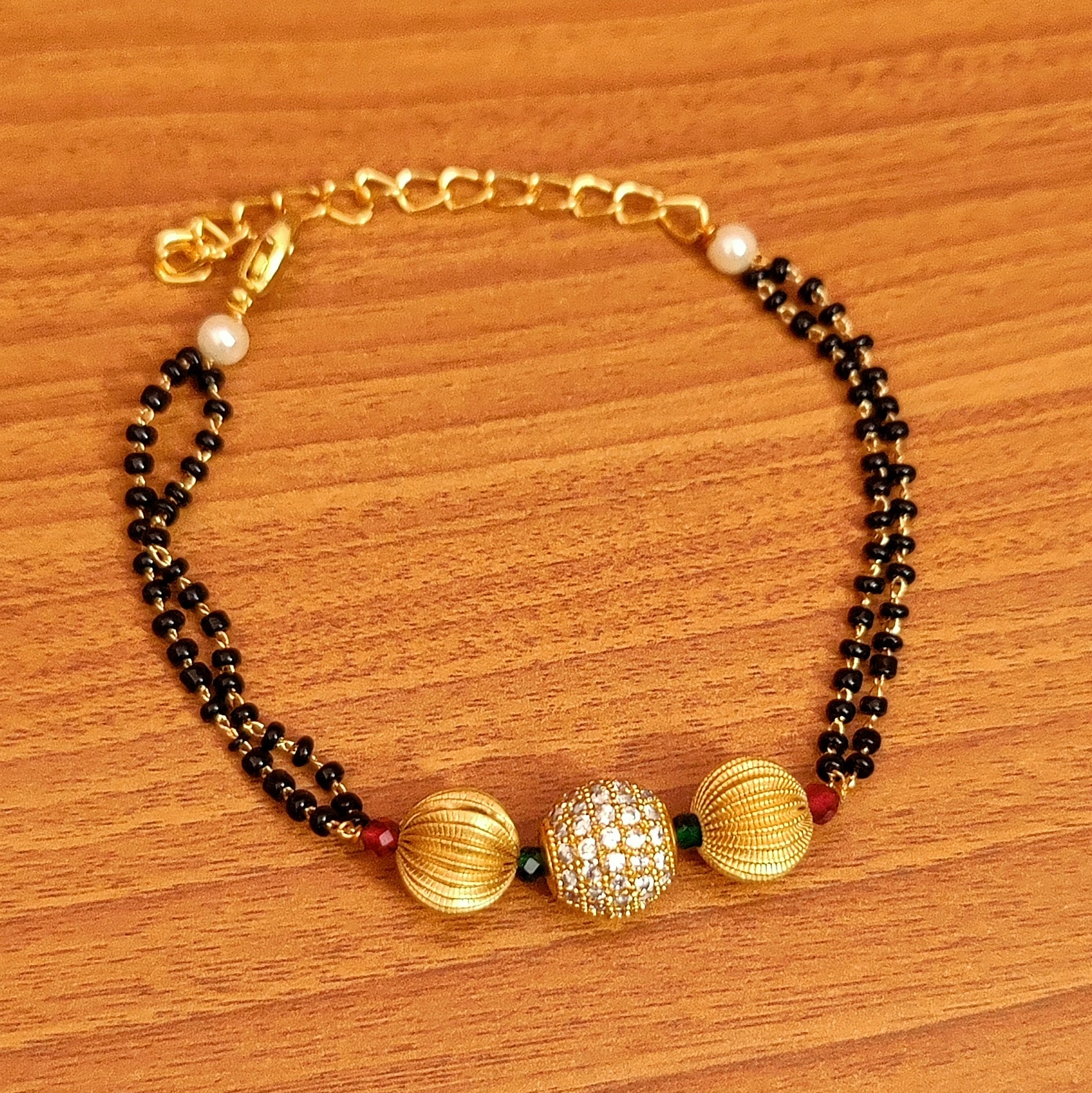 CZ STUDDED GOLD BEAD HAND MANGALSUTRA