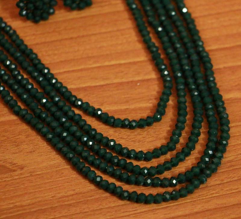 This Necklace is handcrafted in swarowski crystal greean beads of fine quality , this multi layered necklace is very light in weight And Looks Beautiful When Worn In Occasions.