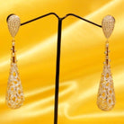 These beautiful Earrings are handcrafted in silver alloy with imitation semi precious american diamond of very fine quality . These earrings are coated with 18 kt gold polish which give them a unique look . An absolutely stunning piece to own and are very light in weight.