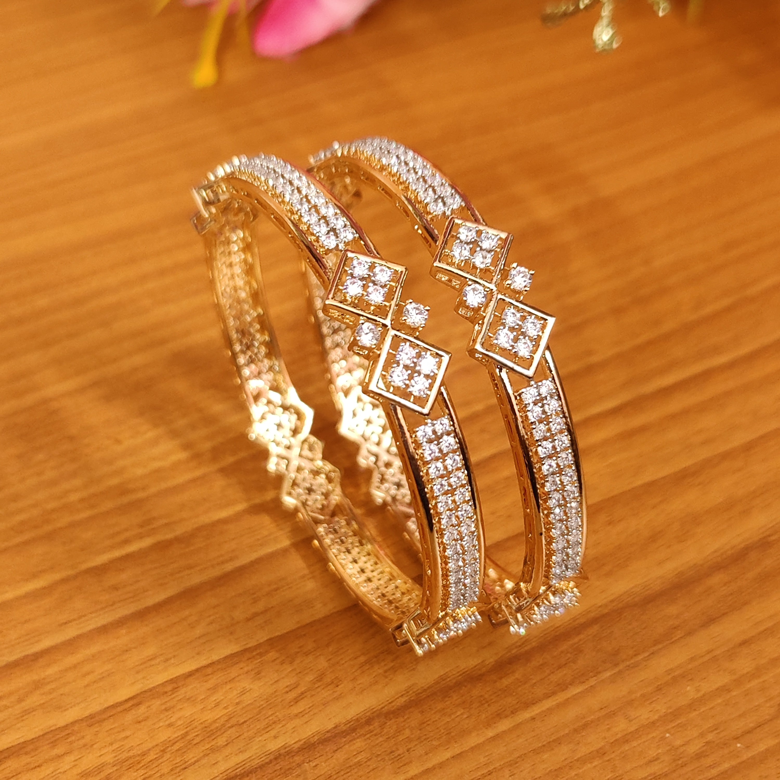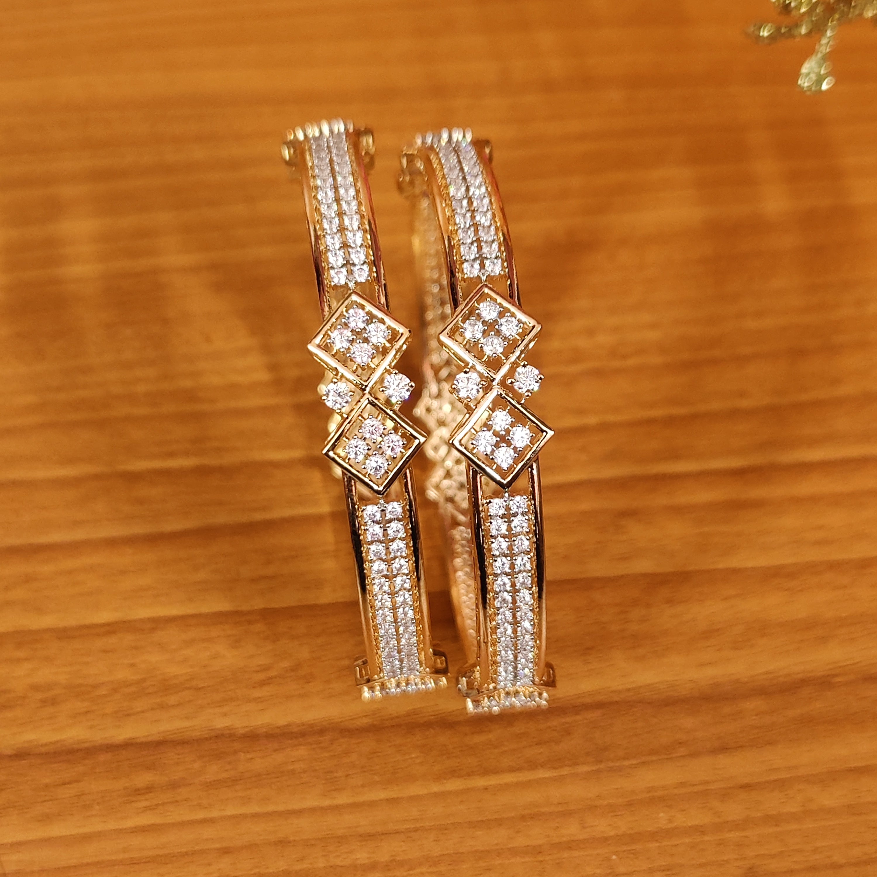 Diamond & Gold Pattern Cz Gold plated Bangles