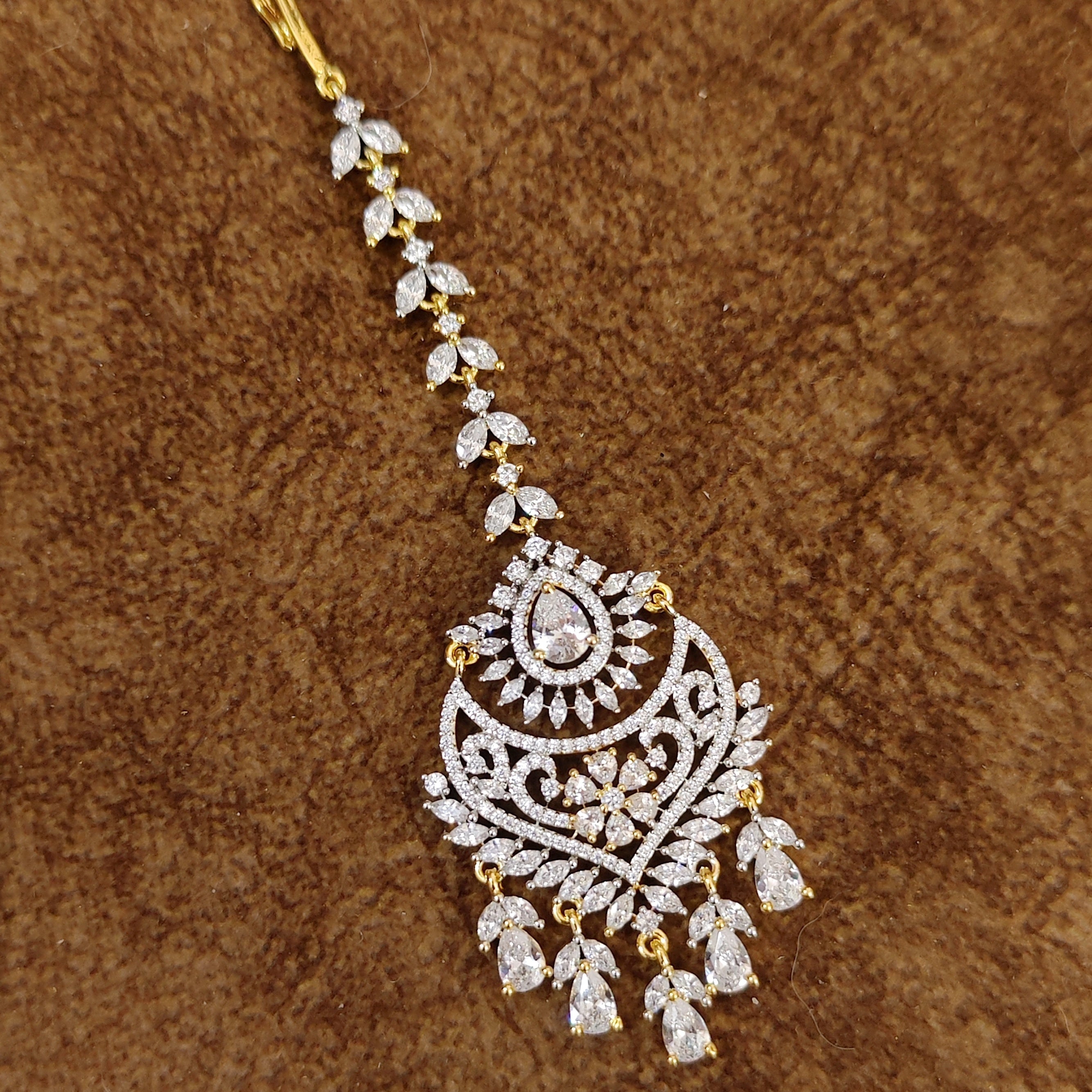 DIAMOND LOOK ALIKE MARQUESE CZ WEDDING MAANG TIKKA