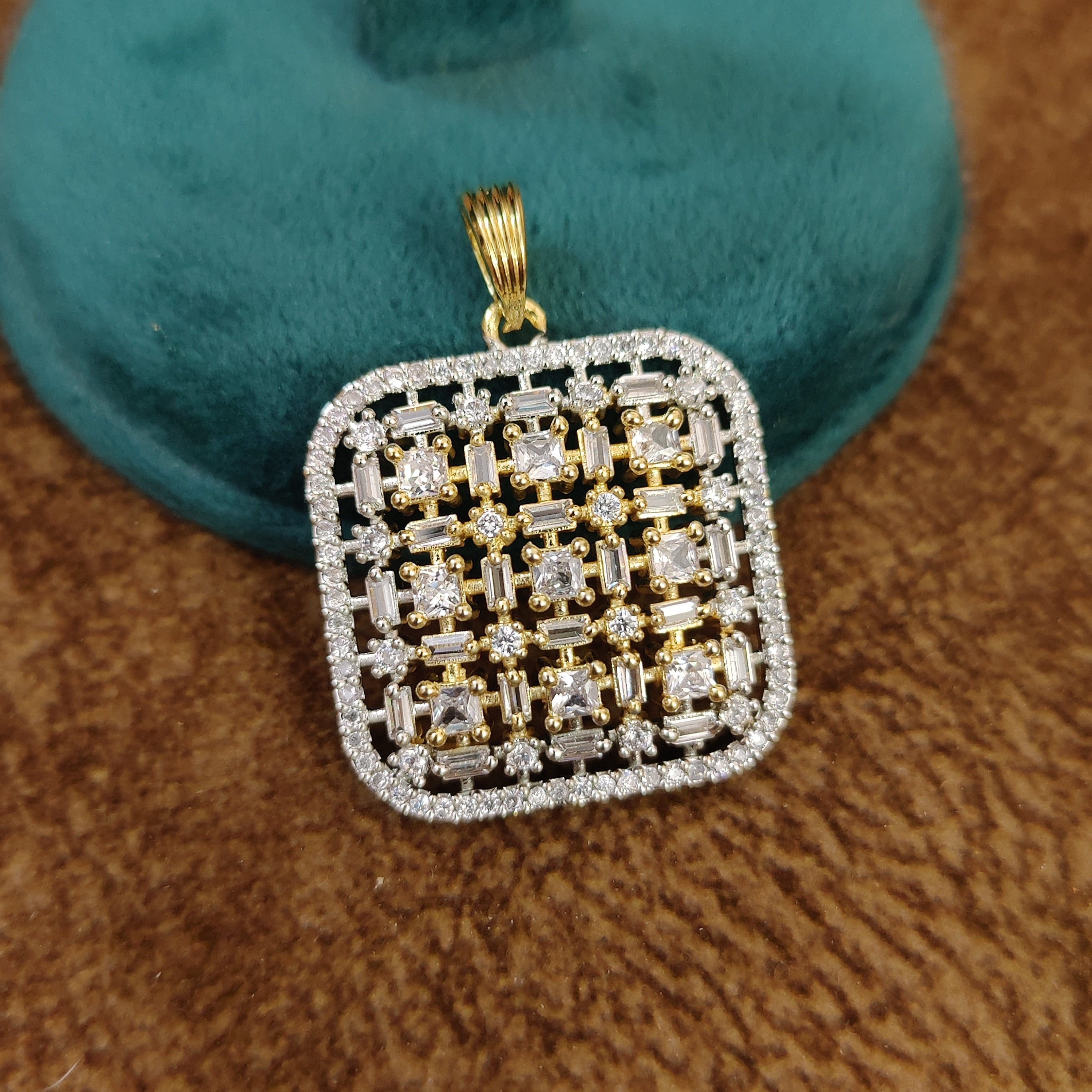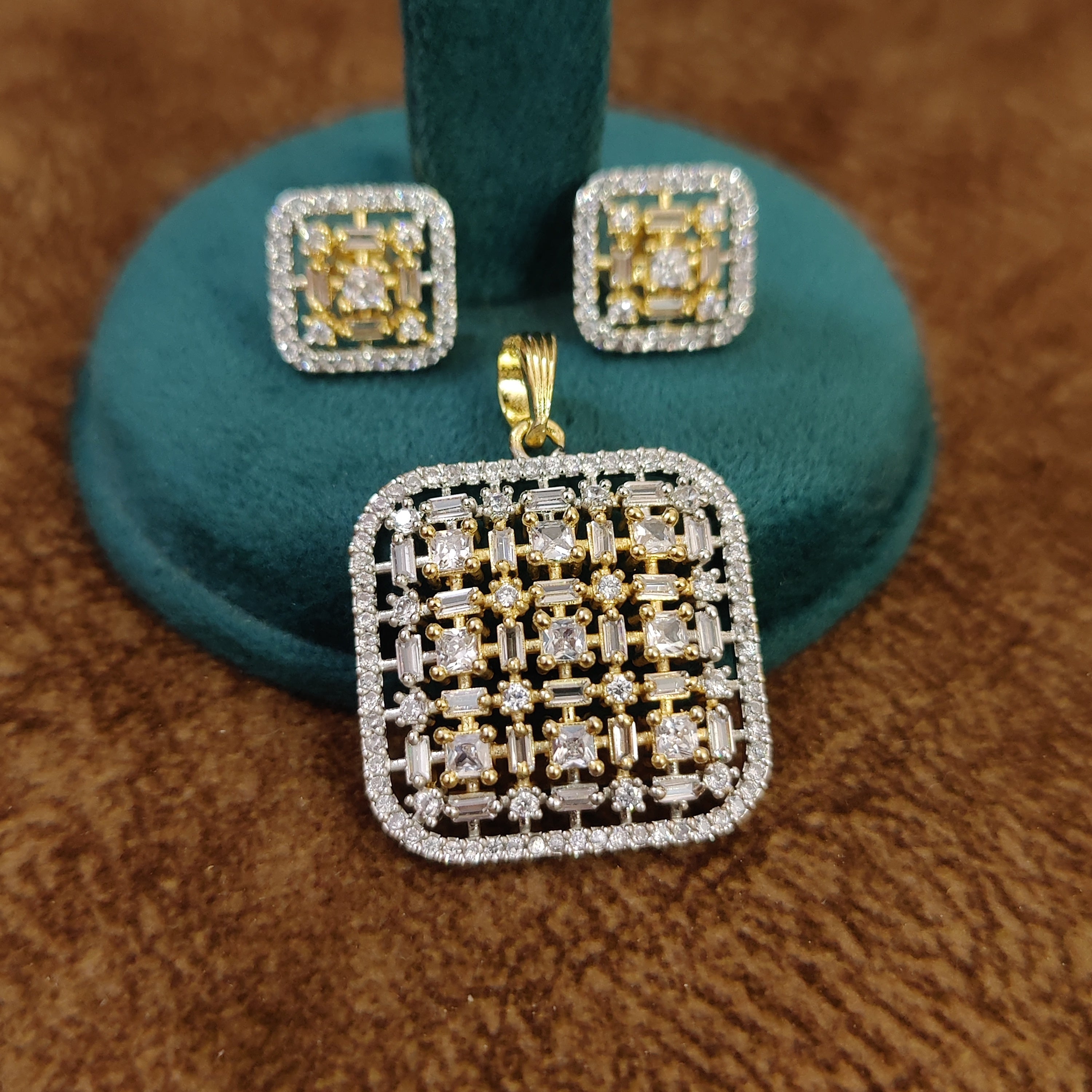 DIAMOND LOOK GOLD PLATED CZ STUDDED PENDANT SET
