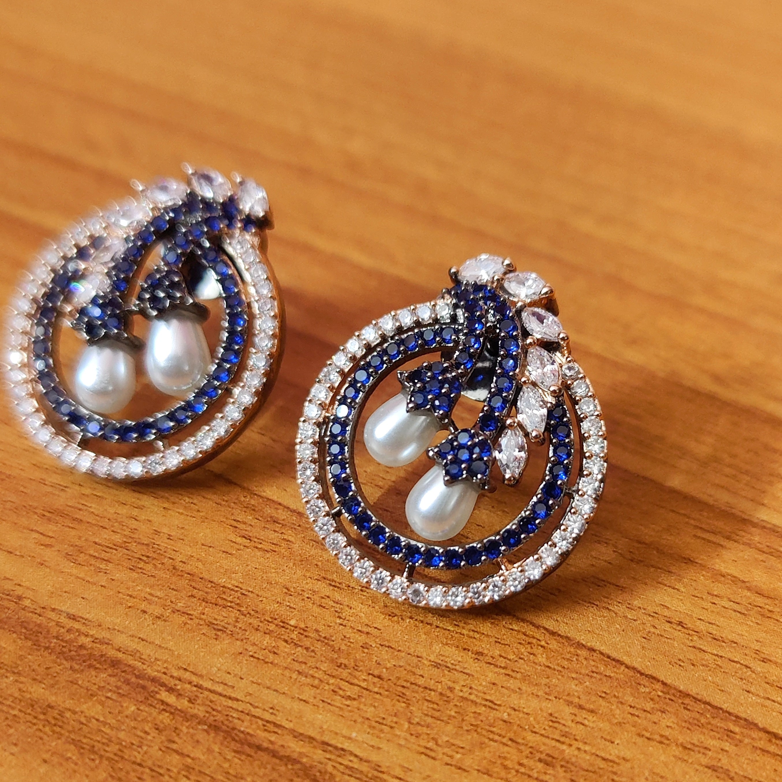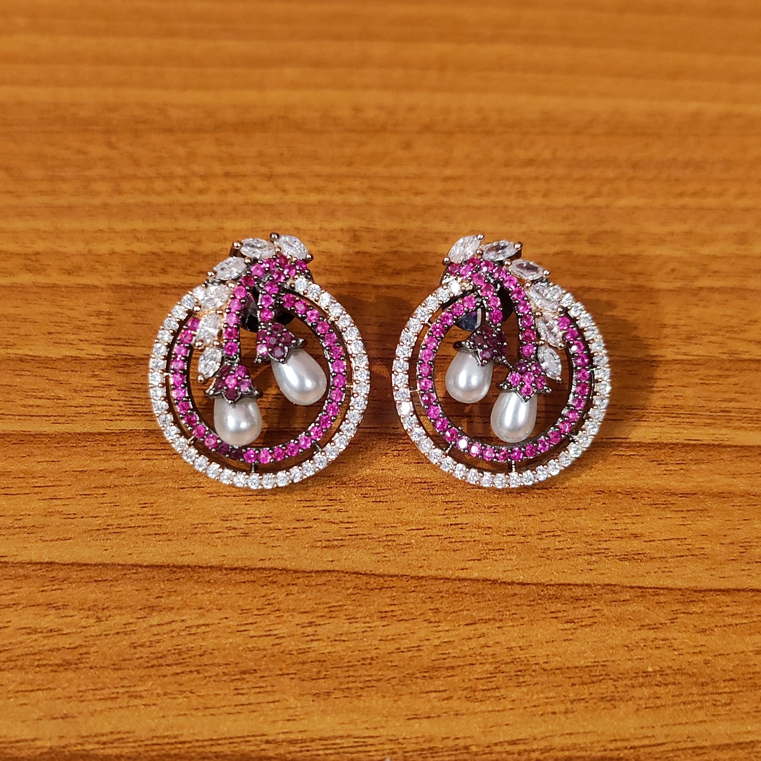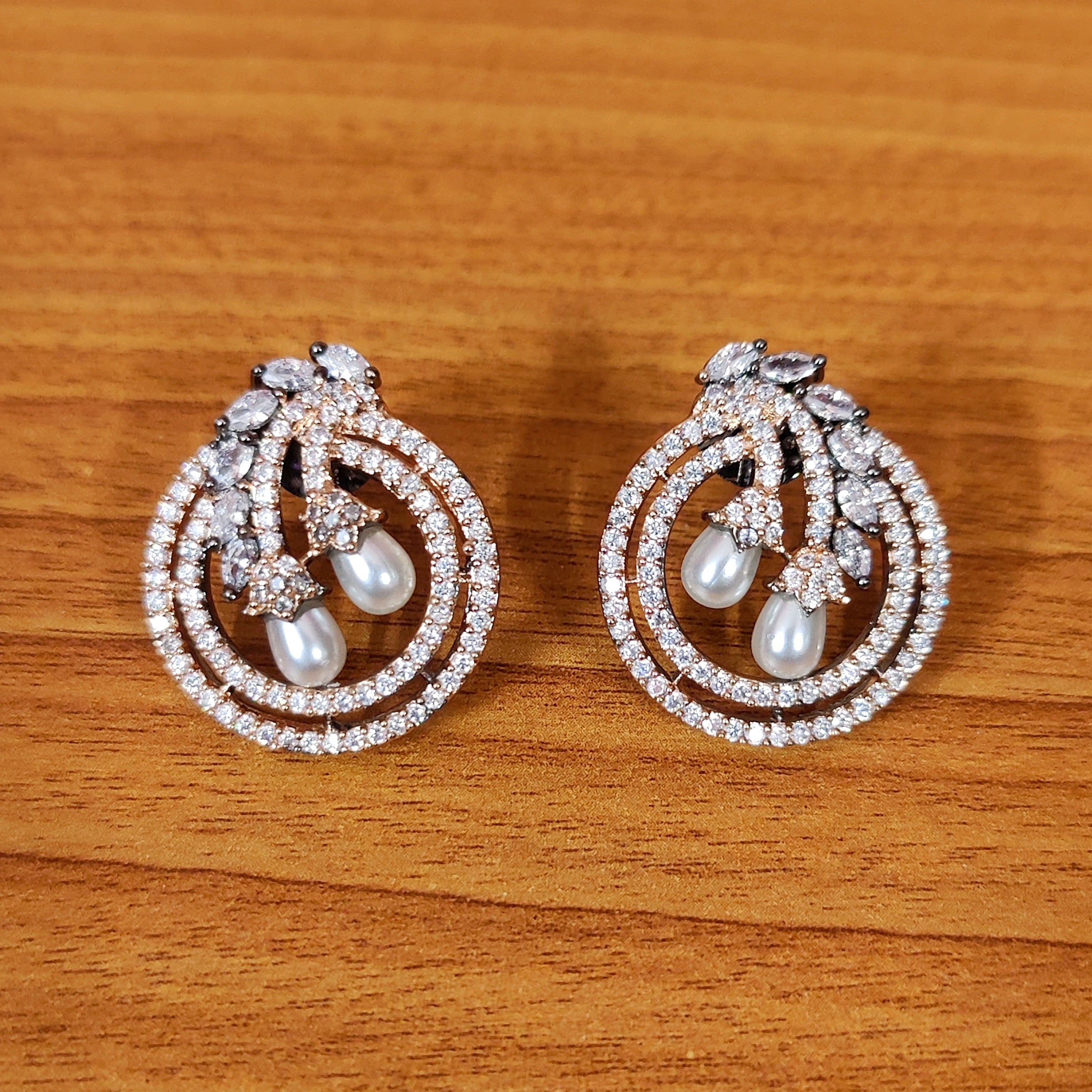 This charming pendant set features a unique combination of pearl stones and sparkling American diamonds on a sleek black rhodium plating. Finely crafted and lightweight, it exudes luxury without breaking the bank. Elevate any outfit with this versatile and elegant set.