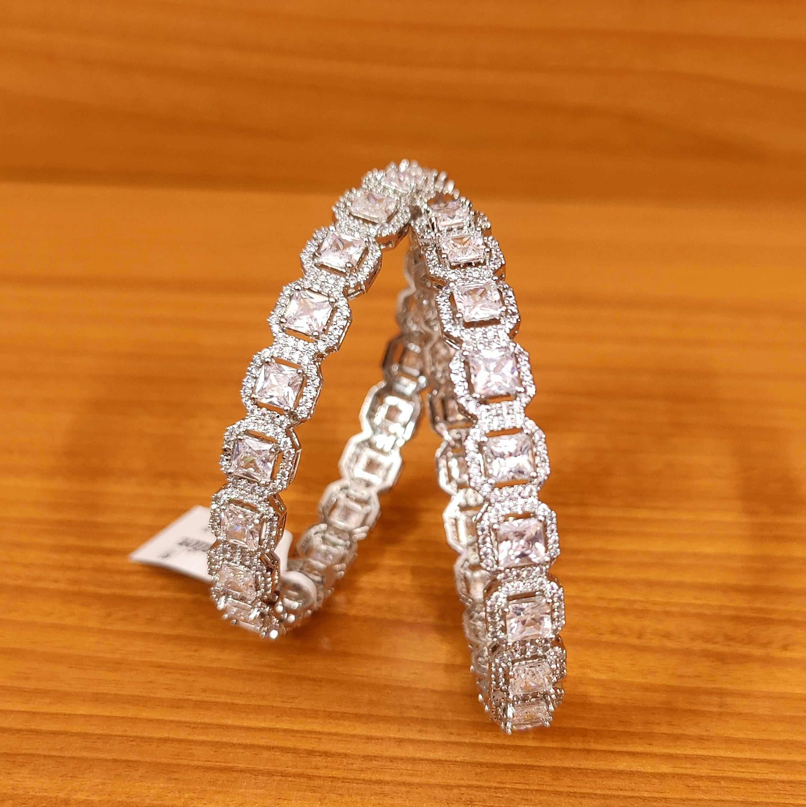 DIAMOND LOOK PRINCESS CUT CZ STUDDED BANGLES