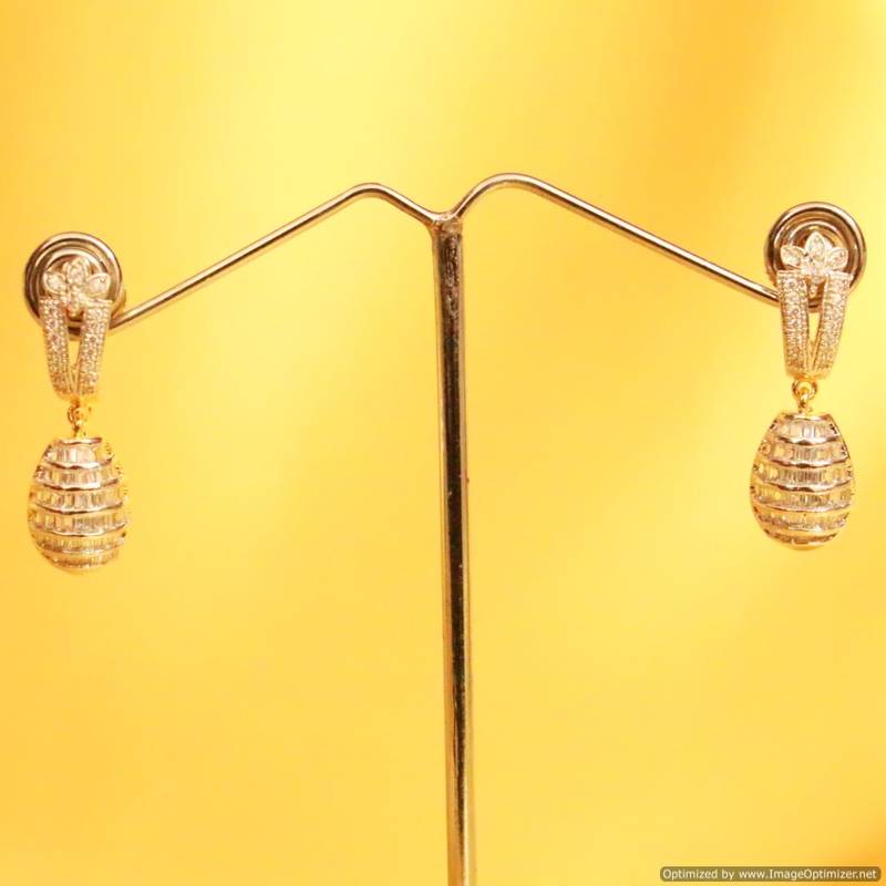 These beautiful Earrings are handcrafted in silver alloy with imitation semi precious american diamond of very fine quality. These earrings are coated with 18 kt gold polish which give them a unique look . An absolutely stunning piece to own and are very light in weight.