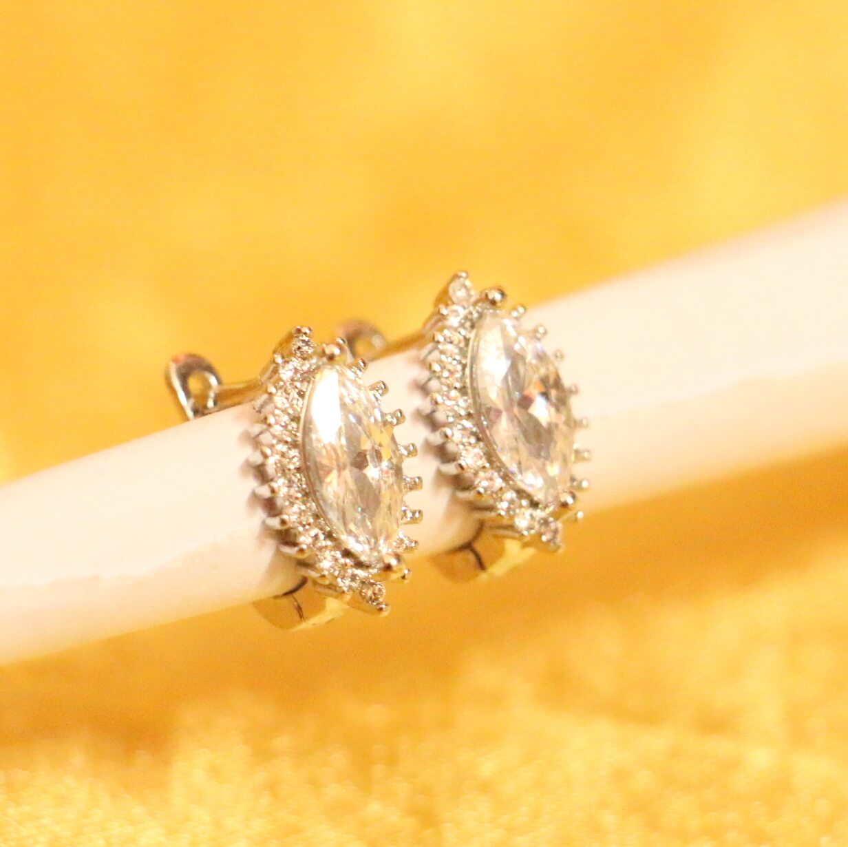 These diamond look earrings are handcrafted in silver alloy with imitation cz stones of very fine quality. These earrings are plated in 18kt gold rhodium plating which gives the design a real jewelry look .