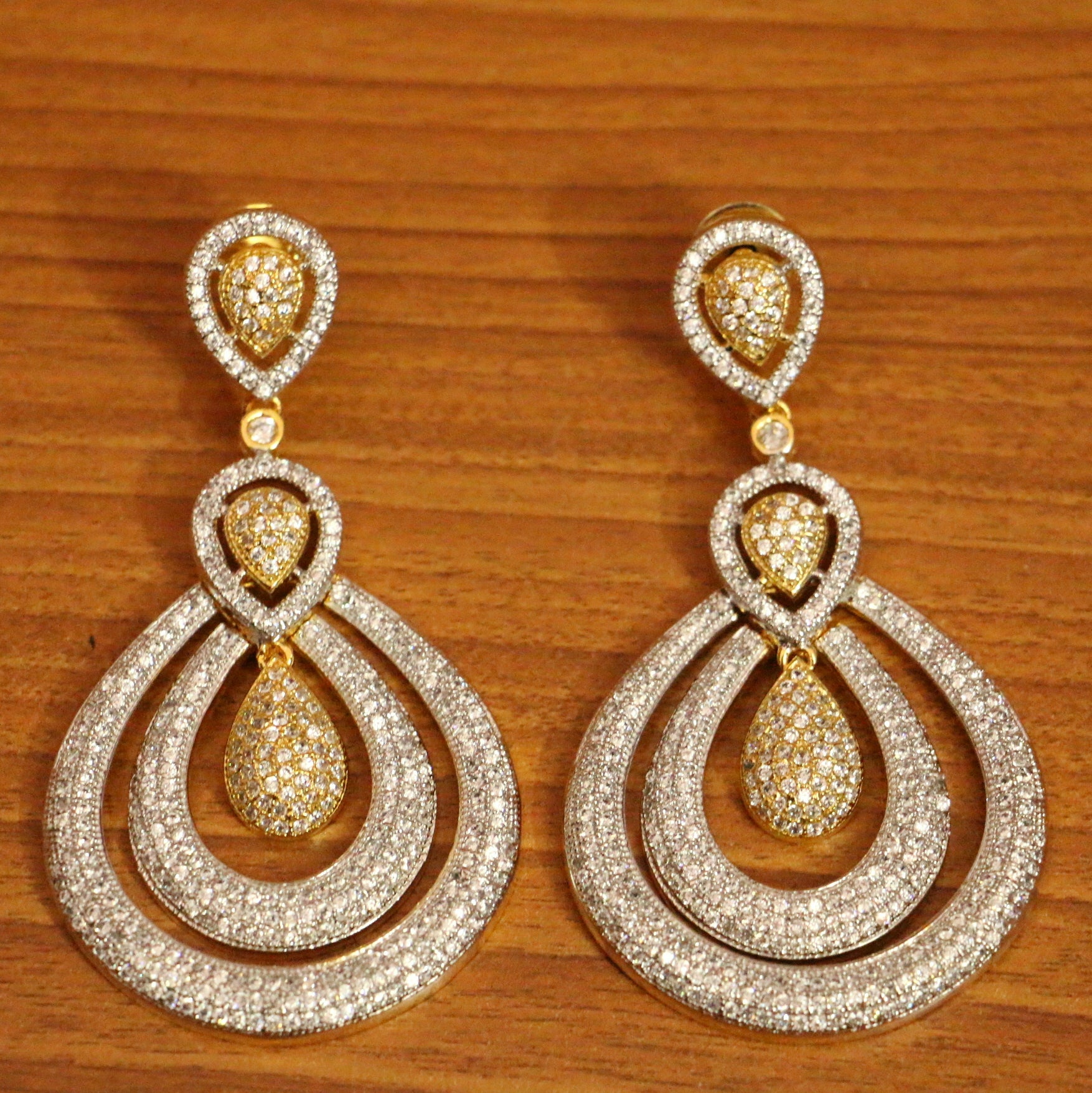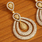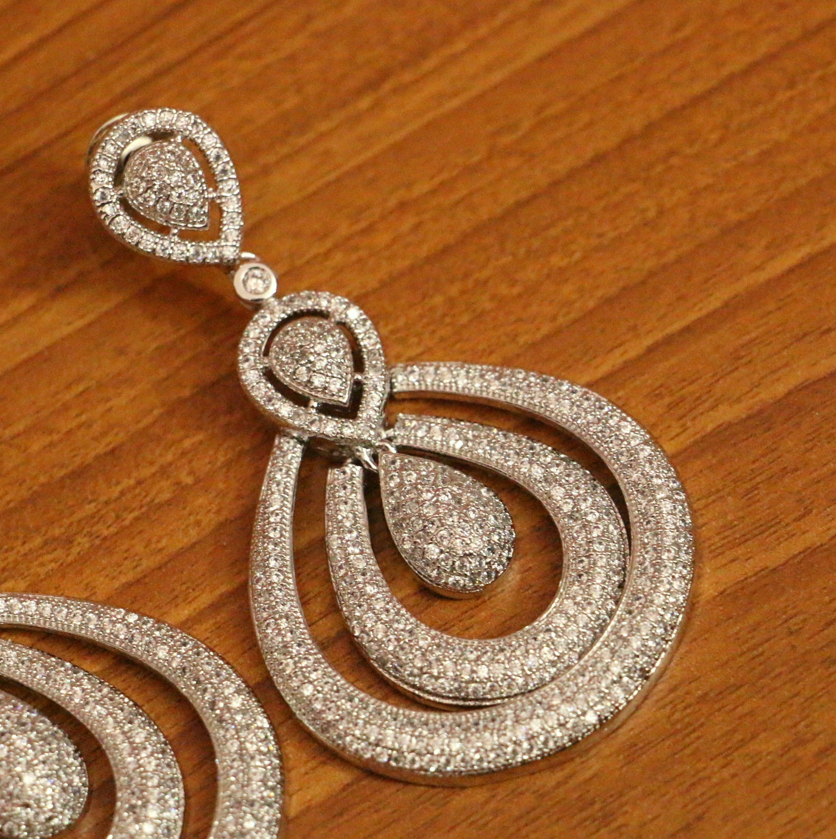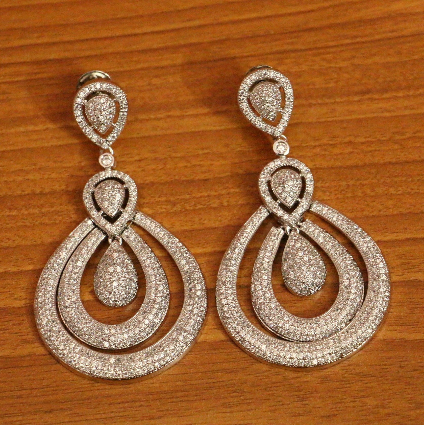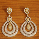 These earrings are handcrafted in silver alloy with imitation american diamond work very fine quality. These artistic yet modern earrings are plated with high quality white gold rhodium. The earrings are very light in weight.