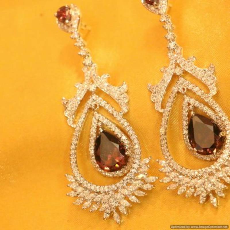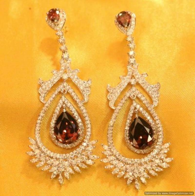 These diamond look danglers are handcrafted in silver alloy with imitation rhodolite colour stone & cz stones of very fine quality. These earrings are plated in white gold rhodium plating which gives the design a real jewelry look .