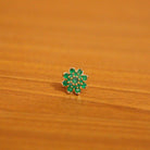 This flower pattern piercing nose ring is handcrafted in silver alloy with imitation emerald colour cz stones of very fine quality , the nose ring is very light in weight and plated with 18kt gold rhodium to give it a real gold look.