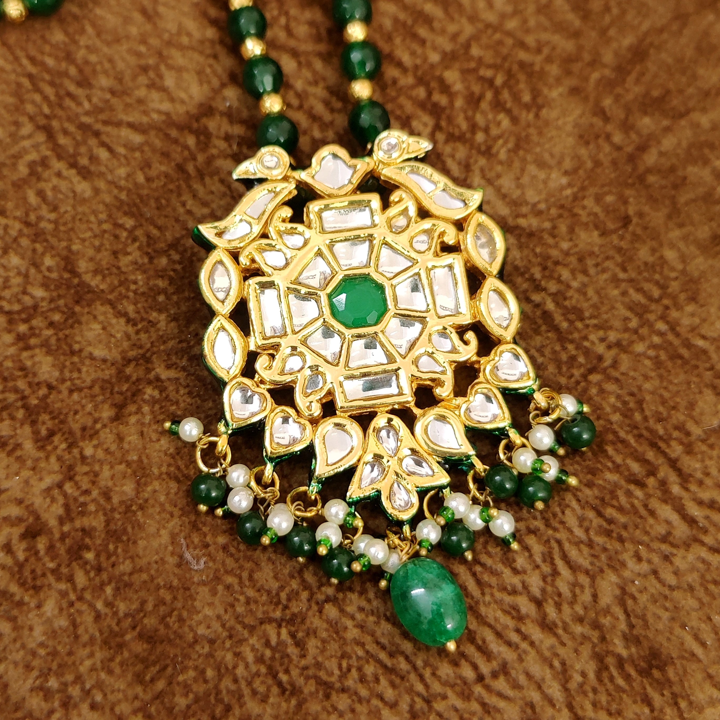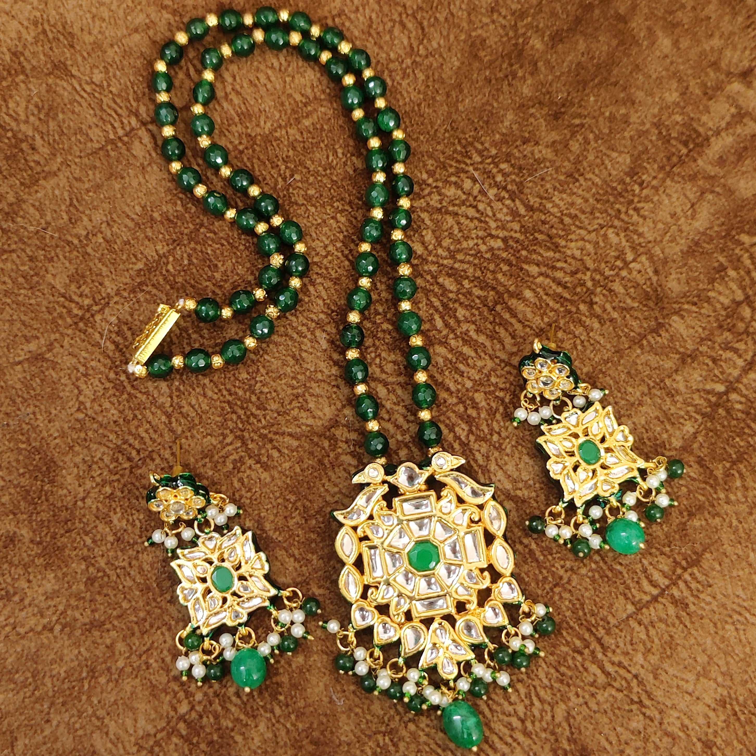 EMERALD GREEN ROYAL BIKANERI KUNDAN POLKI SET