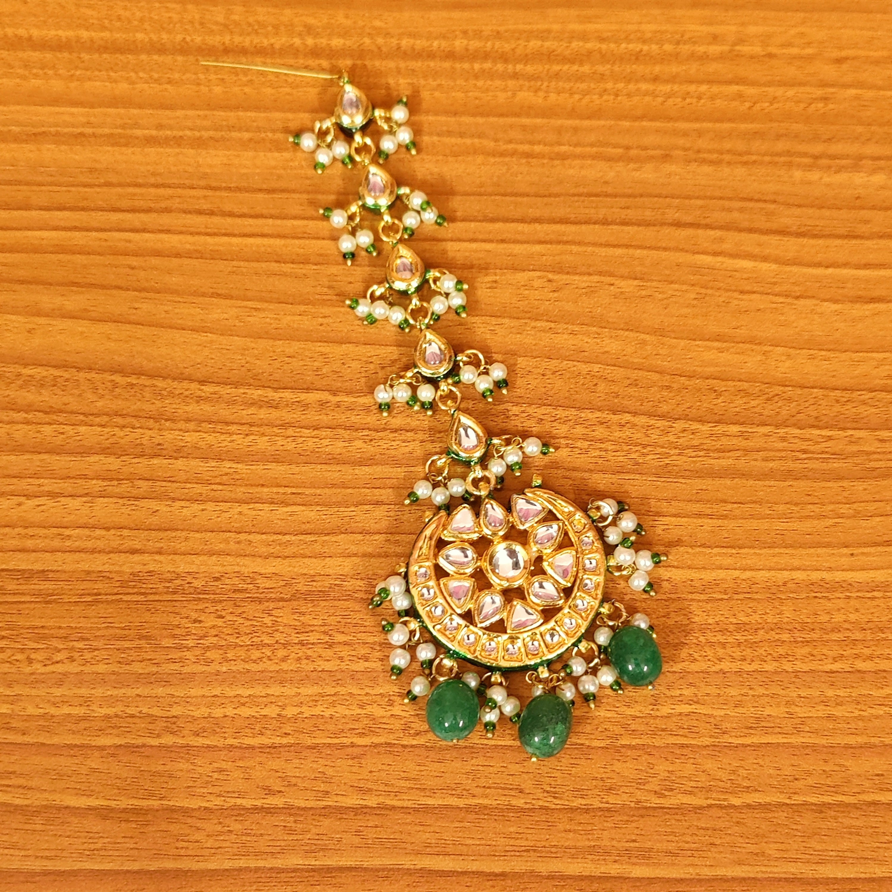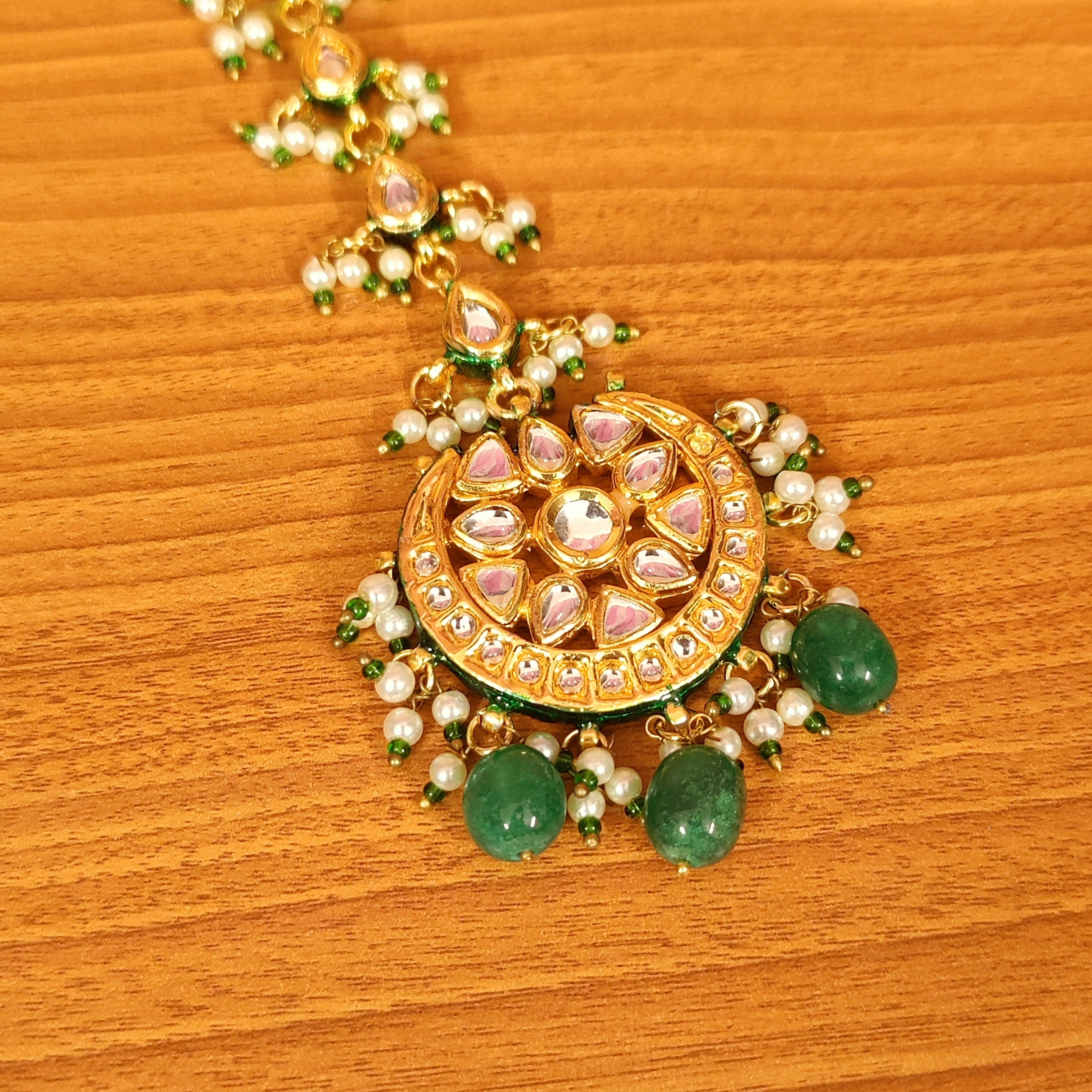 EMERALD LOOK KUNDAN MEENAKARI WEDDING MAANGTIKKA