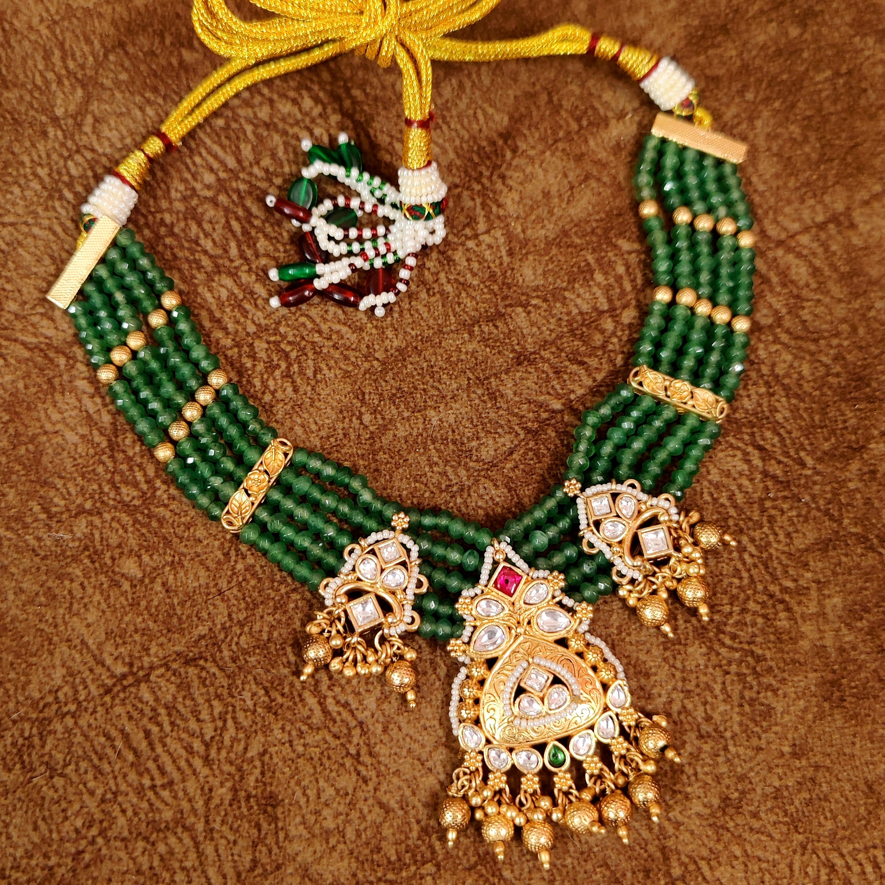 EMERALD LOOK KUNDAN POLKI WEDDING NECKLACE SET