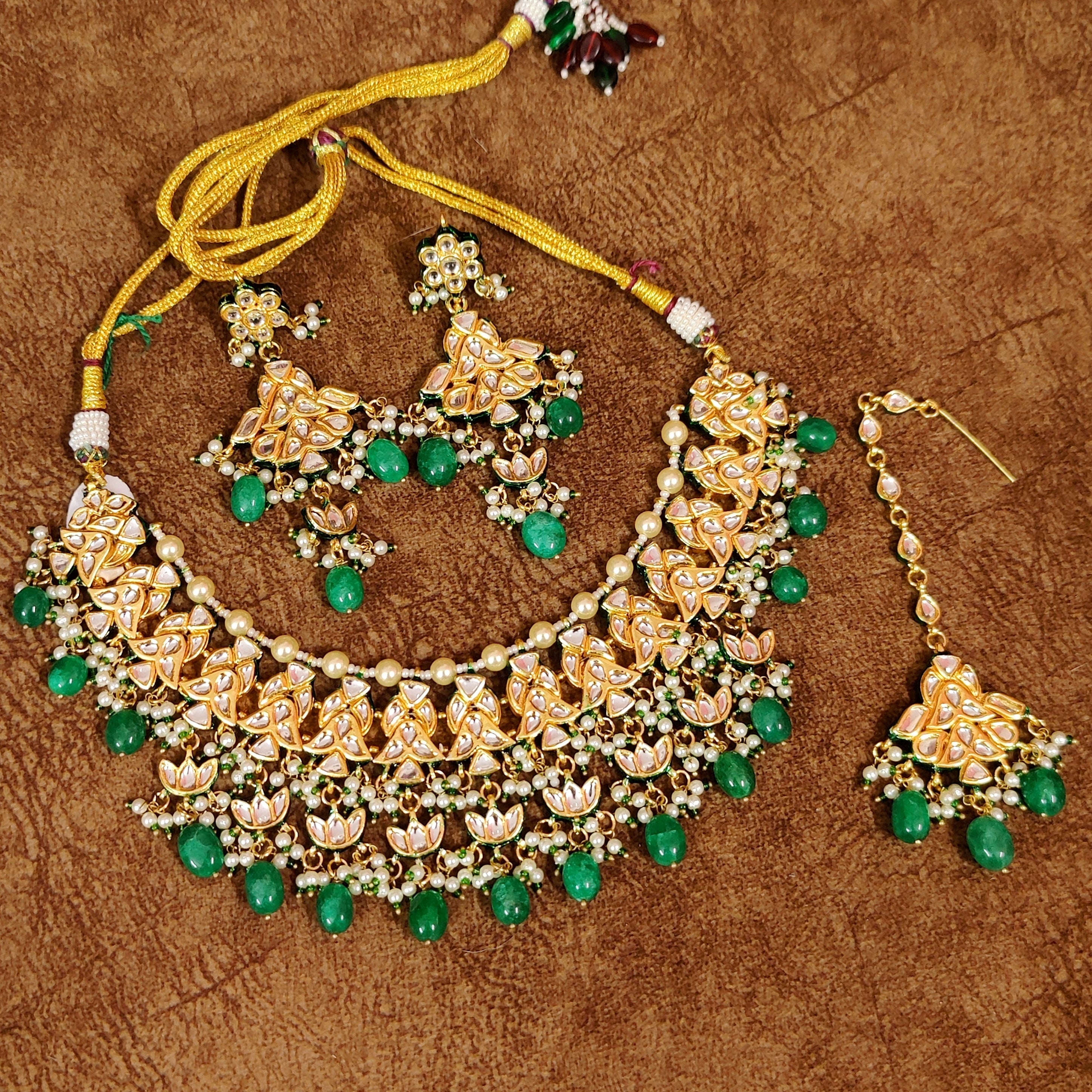 EMERALD LOOK KUNDAN POLKI WEDDING NECKLACE SET
