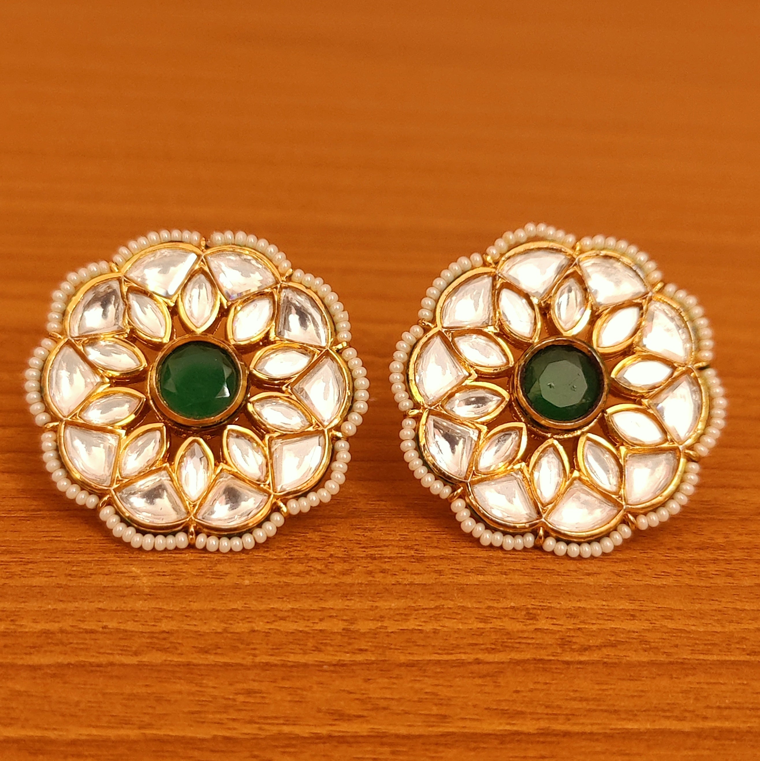 EMERALD LOOK UNCUT KUNDAN POLKI STUDS