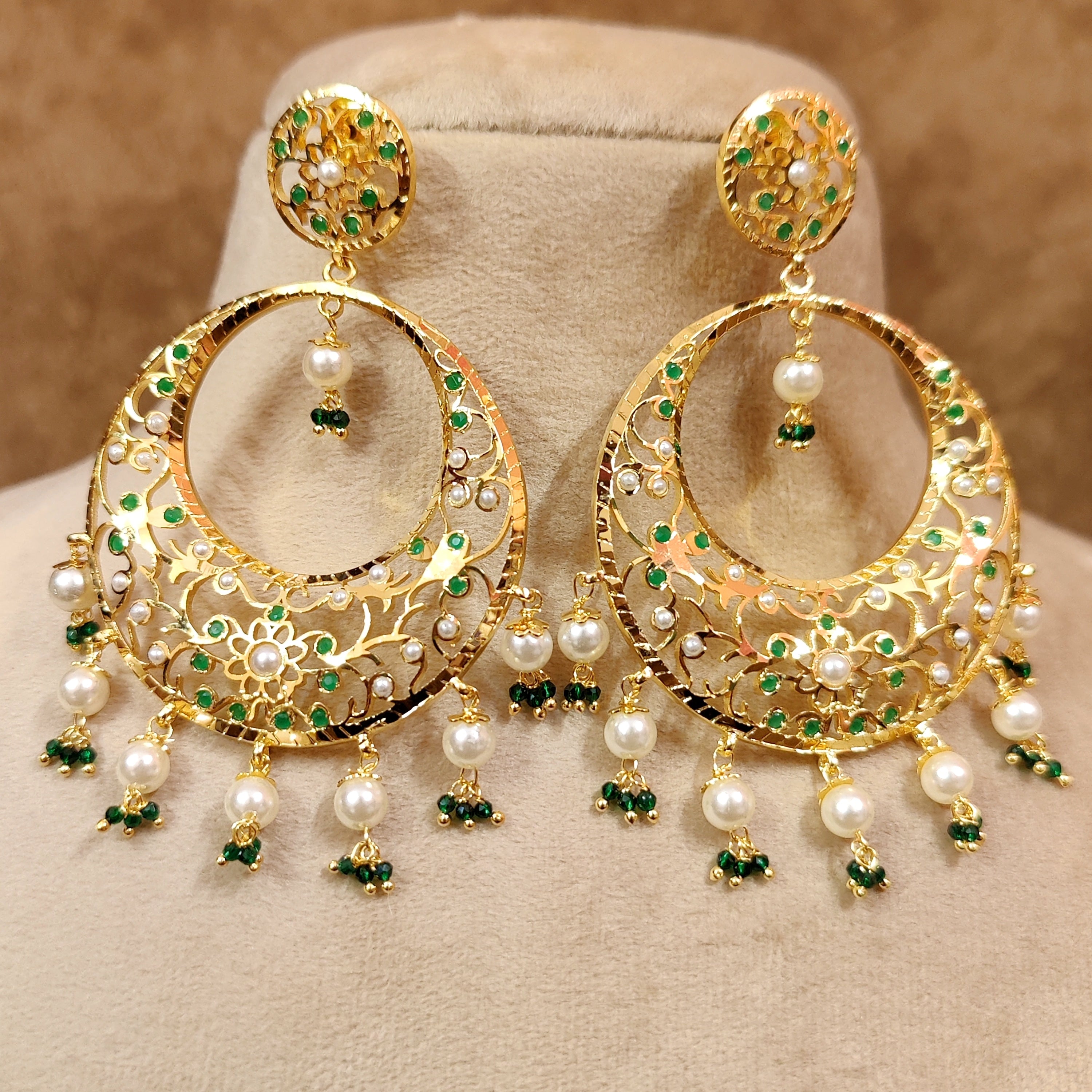 EMERALD & PEARL REAL GOLD LOOK CHANDBALI EARRINGS