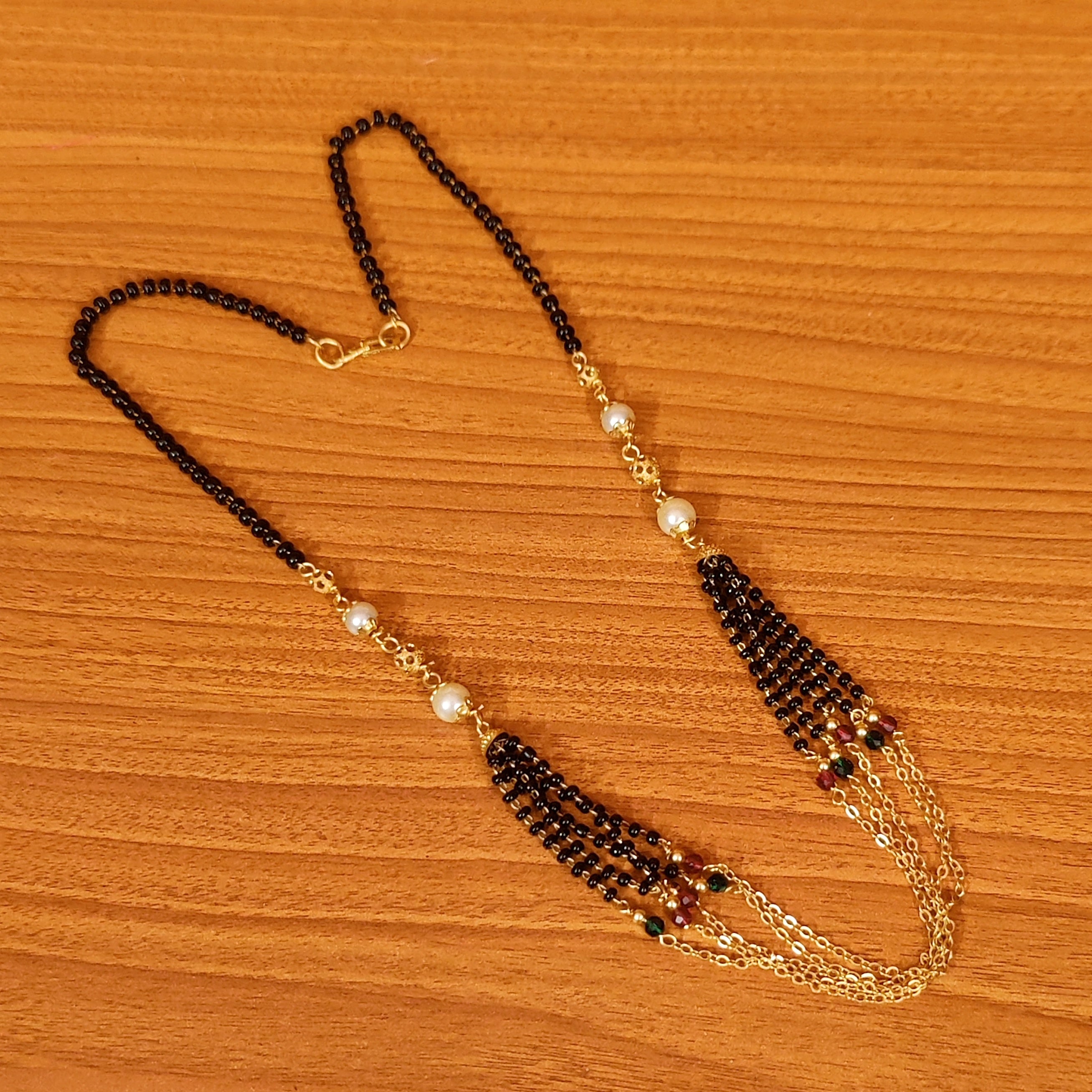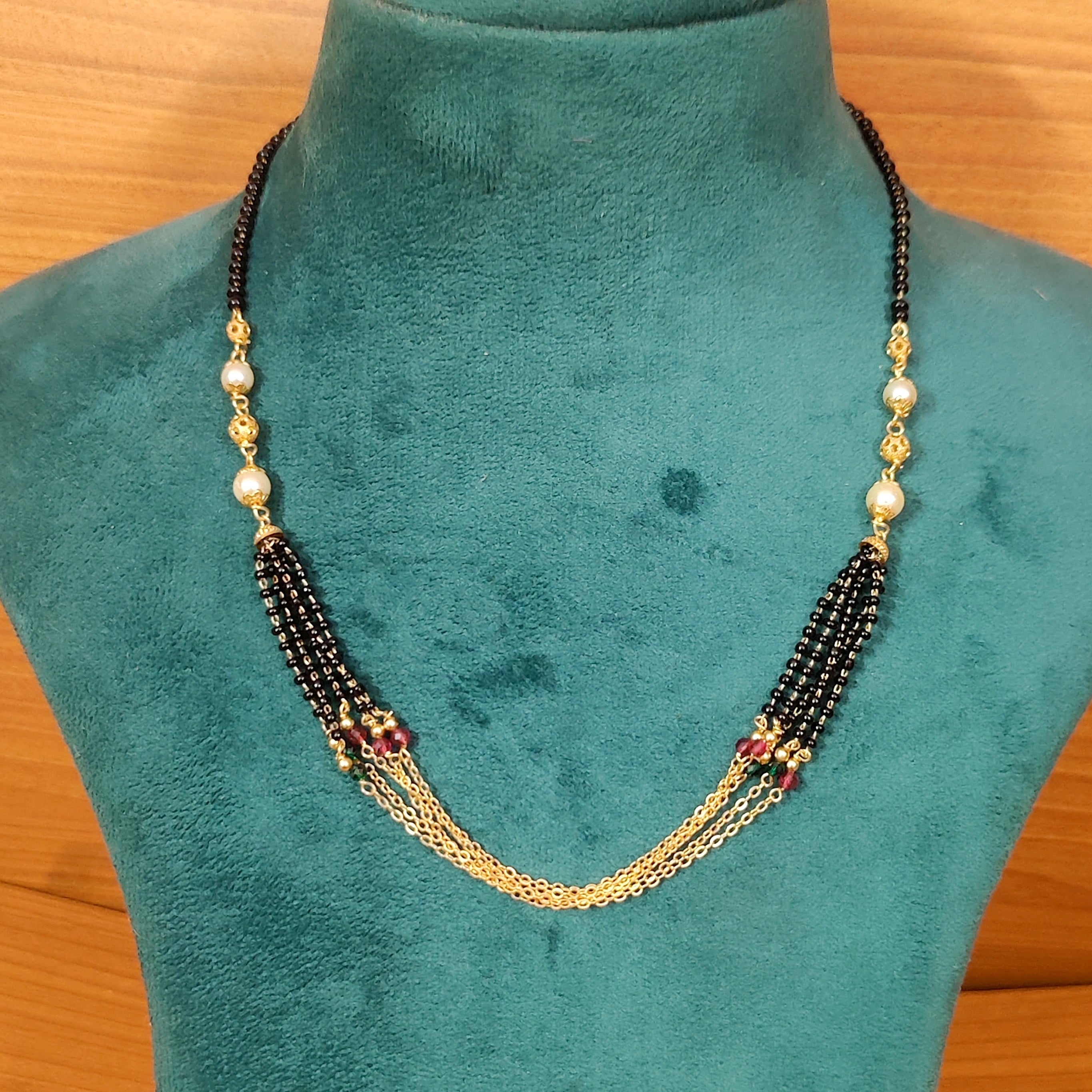 ETHNIC GOLD PLATED MANGALSUTRA BEADS & PEARL CHAIN