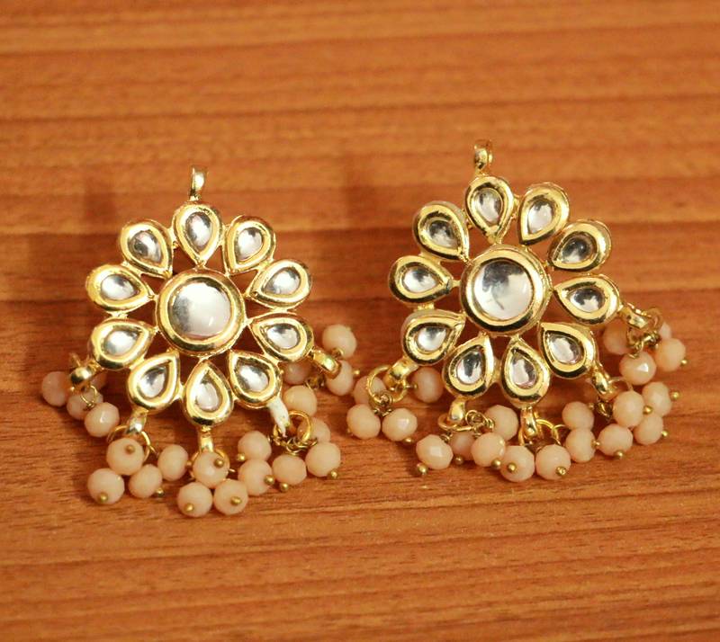 These earrings are handcrafted in silver alloy with imitation swarovski crystal & kundan with meenakari work of very fine quality. These artistic yet modern earrings are plated with high quality 18kt gold. The earrings are light in weight.