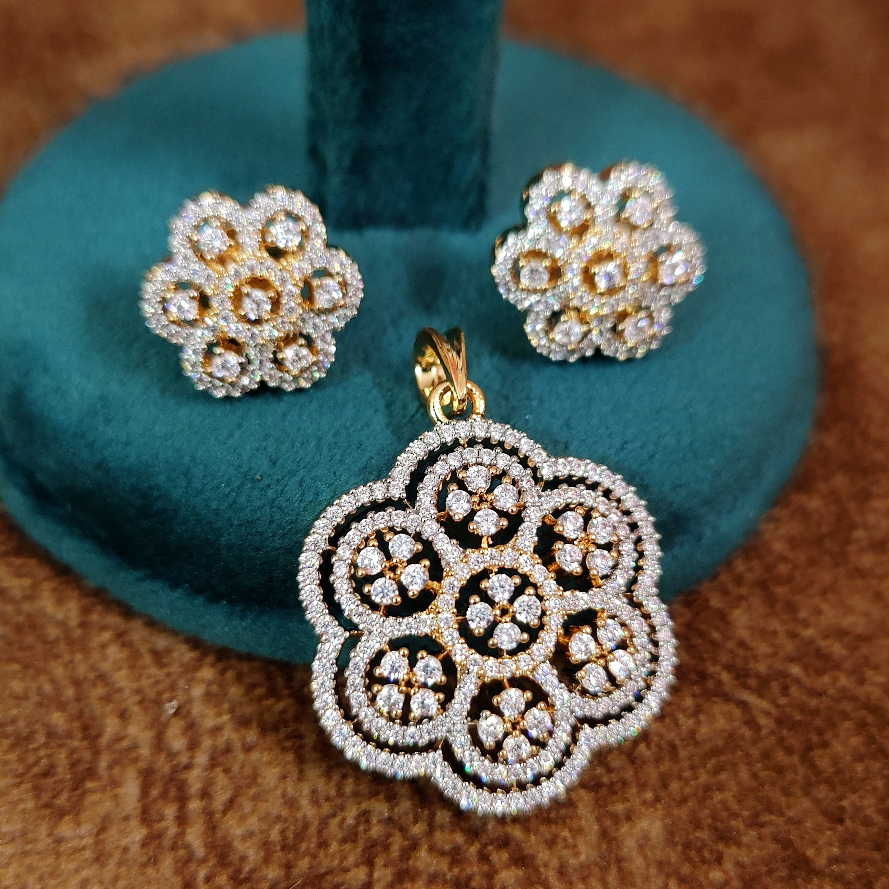 FLOWER PATTERN DIAMOND LOOK ALIKE FINE PENDANT SET WITH CHAIN